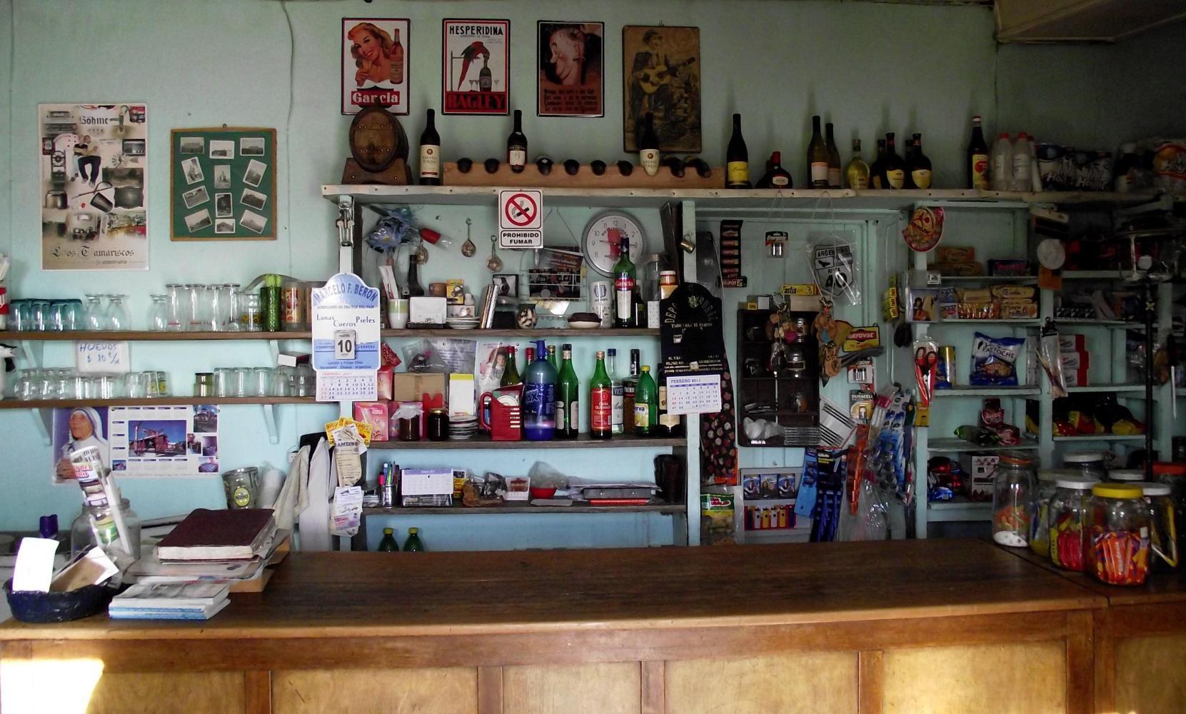 The shop is actually signed on approach as a museum; but a museum of what we did not ask: though looking through the door from the shop into the kitchen, the family home was timeless: most of the furniture was 1950s. They were sat around the table for breakfast. The only person visible was a big guacho sat at the head of the table in a chair with nice turned woodwork and a curved back rest. On the other side was a large stove-range for boiling the Mate kettle and no doubt essential to keep warm during the long cold winter months.