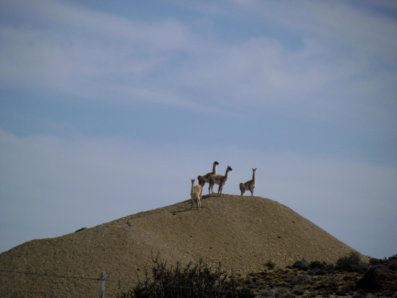 I stop for lunch Lent on the metal crash-barrier on a causeway across one of the above-mentioned salt lagoons; doing my best to shelter the stove and myself from the frisk breeze. The view is bleak and silence with the usual guanachos eyeing me. I can look forward to, according to the info centre in Piedra Buena, a roadhouse 100km South where it's possible to refill on water, buy soft drinks and snacks, and perhaps camp the night. I have covered 64km so there only remains 36km: that is my goal for the day even-though I don't know what to expect there.