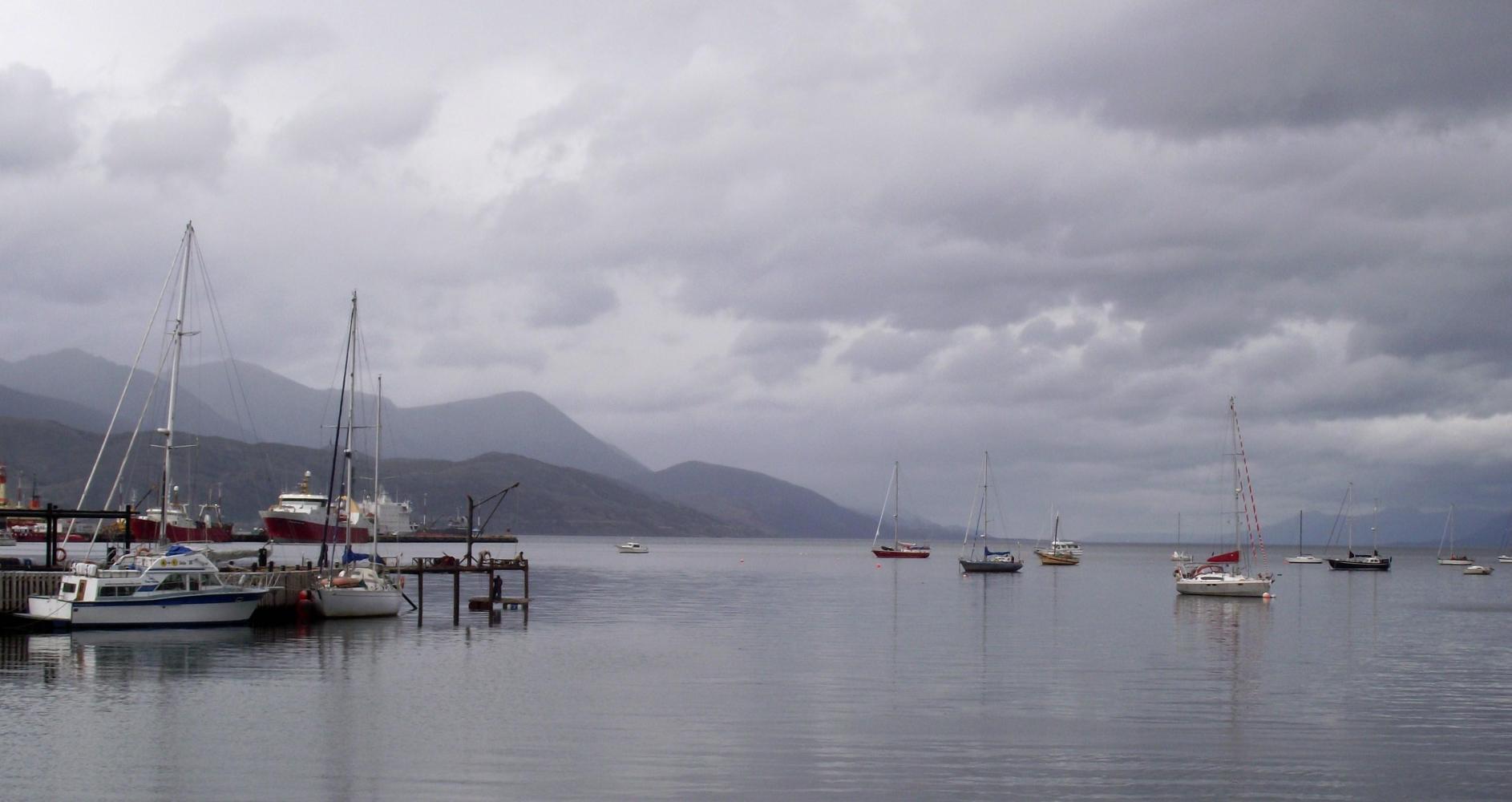 I will try to make this brief. This is my fourth day at "Club Andino Ushuaia" It has been one of the best campsites for a long time in that it is inexpensive; it's got excellent facilities, but best of all is the view down over the Beagle Channel and the mountains beyond. The outlook is always rainy though. Heavy grey clouds are omnipresent. The best light and chance of sunshine is morning to noon. The rain is usually on by afternoon. The sun can make a reappearance in the evening, but as it's Autumn it's pitch dark at eight.