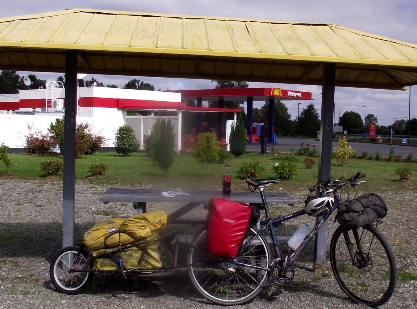 Lunch I ate at a picnic table with a roof in-case of rain at a service-station. It was unsatisfactory as I'd bought jam and bread, but, the jam was too sweet so I end up not eating quite enough while what I had eaten left me with that sickly acid feel in the throat after eating too much sweet things, which I'd done.