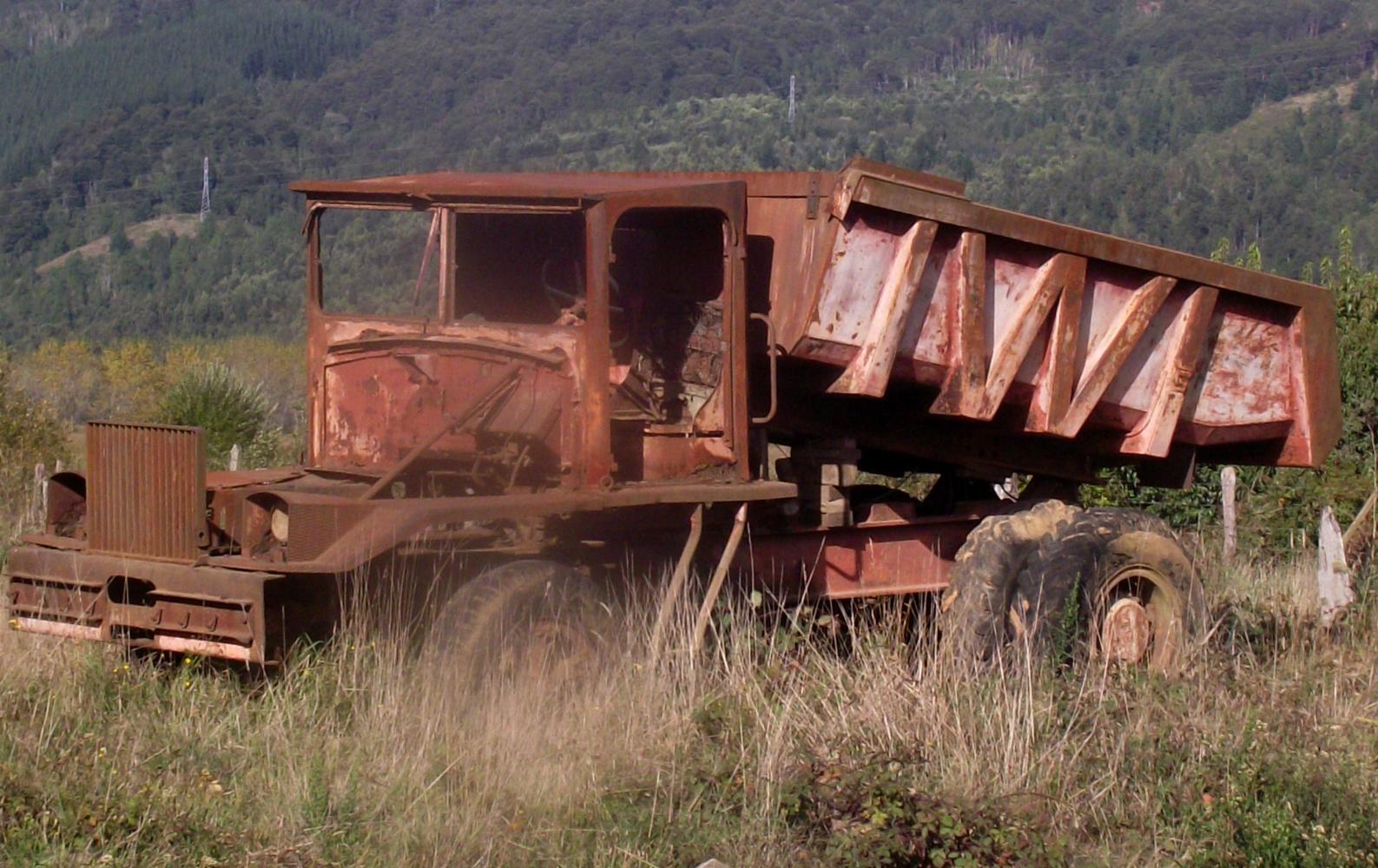 With the sunshine there was good light for taking photos and the reason I'd stopped where I did was two other things other than to check the number of people living in Valdivia. Firstly; I was feeling slight stomach cramp from not having eaten enough and needed to rest. And because of a rusty old traction engine and an equally rusted old tipper-truck which I wanted to photograph.