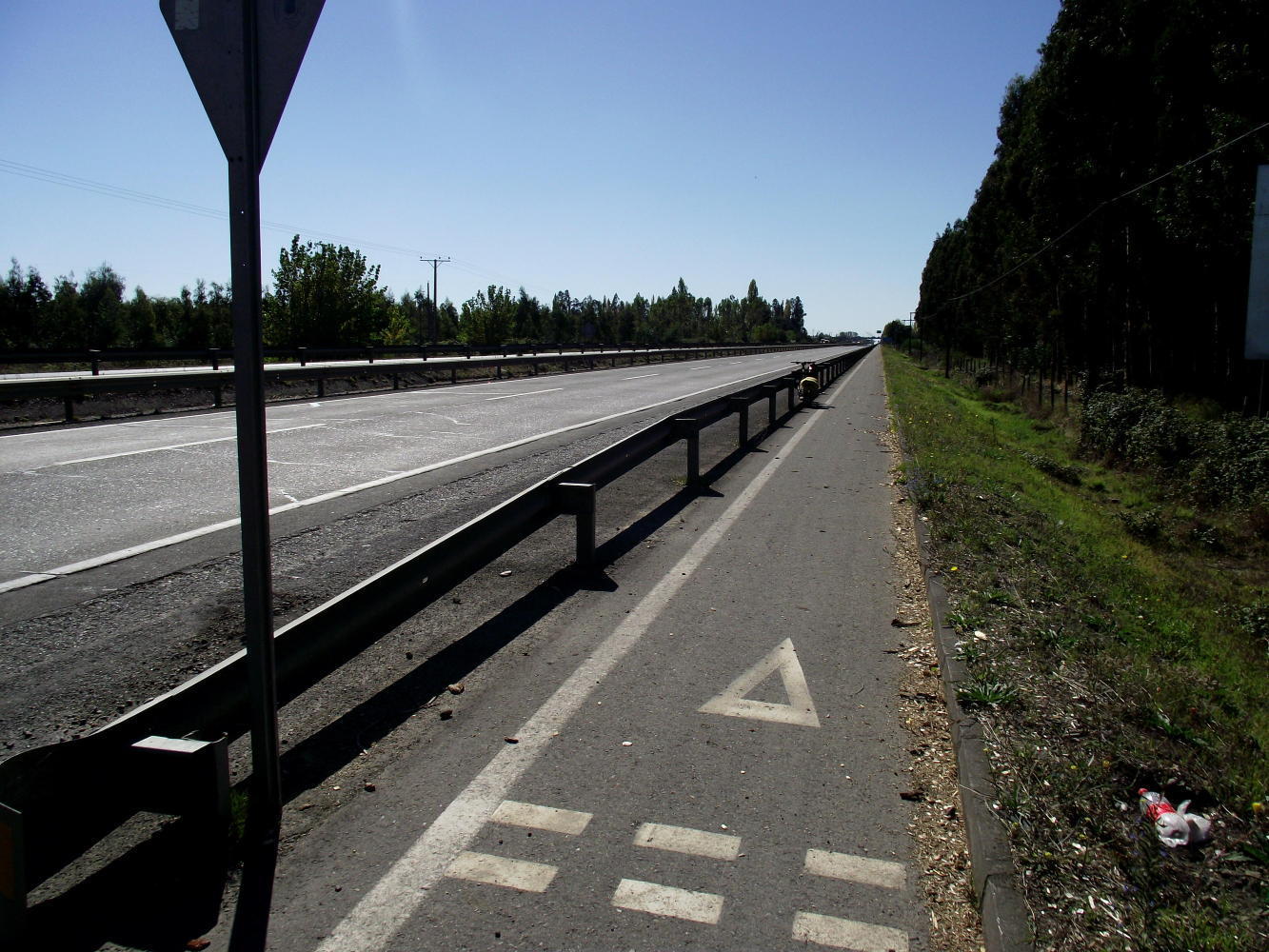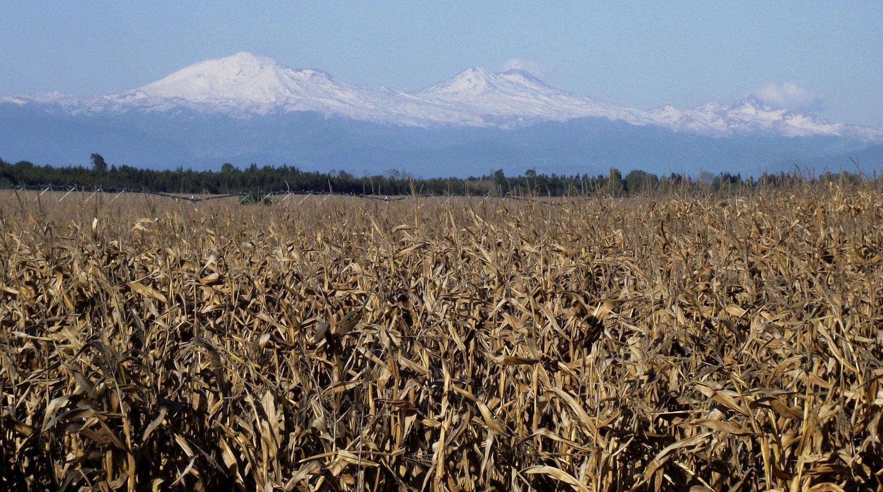 The day continued mush like the others on the Pan Am which is nice to ride on albeit a bit monotonous at times. I'm now bowling along in as big a gear as I can manage hoping to cover as mush distance as possible today. With the clear weather there's a great vista to the East of snow capped Andean peaks across yellow crops of Maize and various other crops. The next big town is Talca which I won't be reaching tonight.