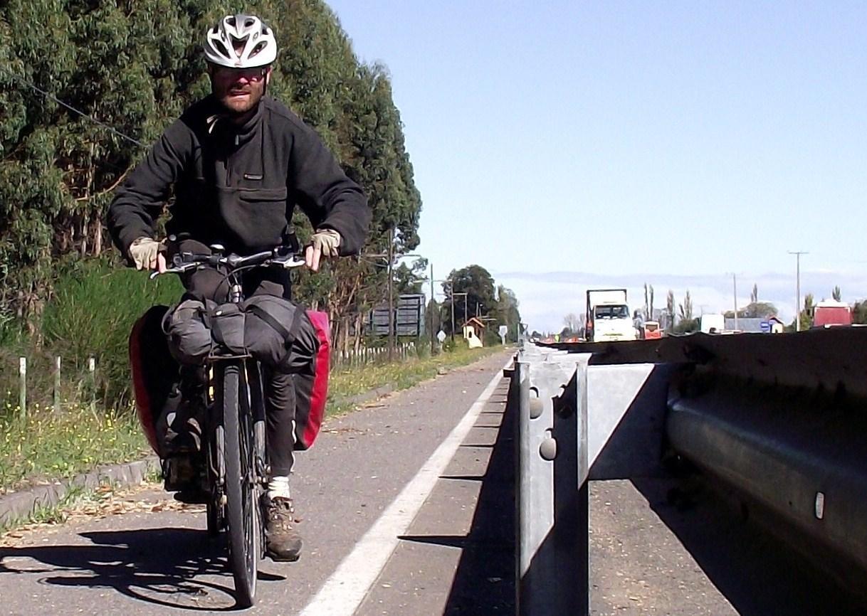 I have a useful booklet listing hostels in Chile and there is a hostel listed for the town of Chillan which was the town I planned on reaching Saturday evening. But on checking the address during an afternoon rest, I find that it isn't actually in town itself, but 20km before town. So Is glad I'd checked. The address listed, or rather the description of "how to find us" given was, "take the road from Bulnes to the village of Tres esquinas. We are at kilometer #7."