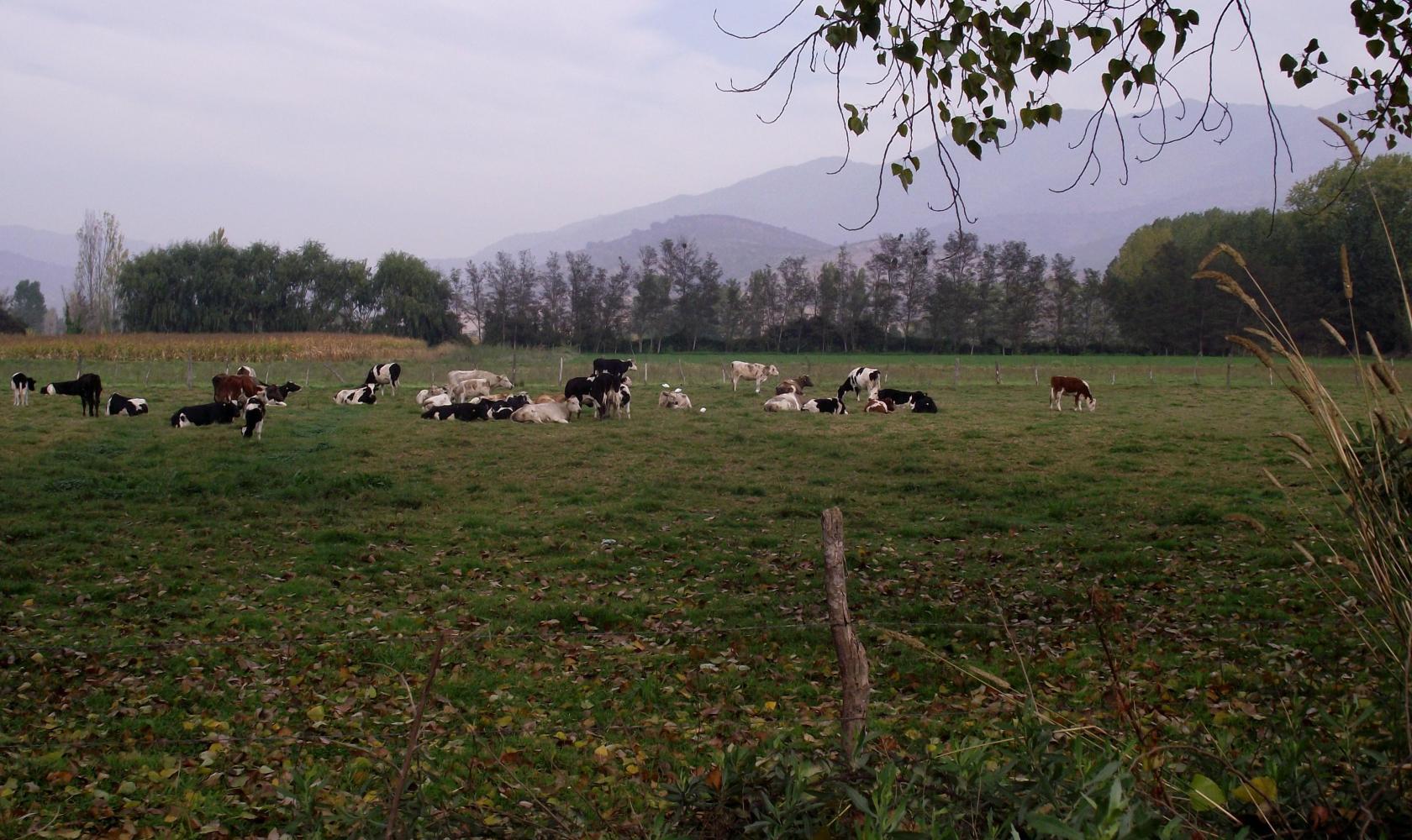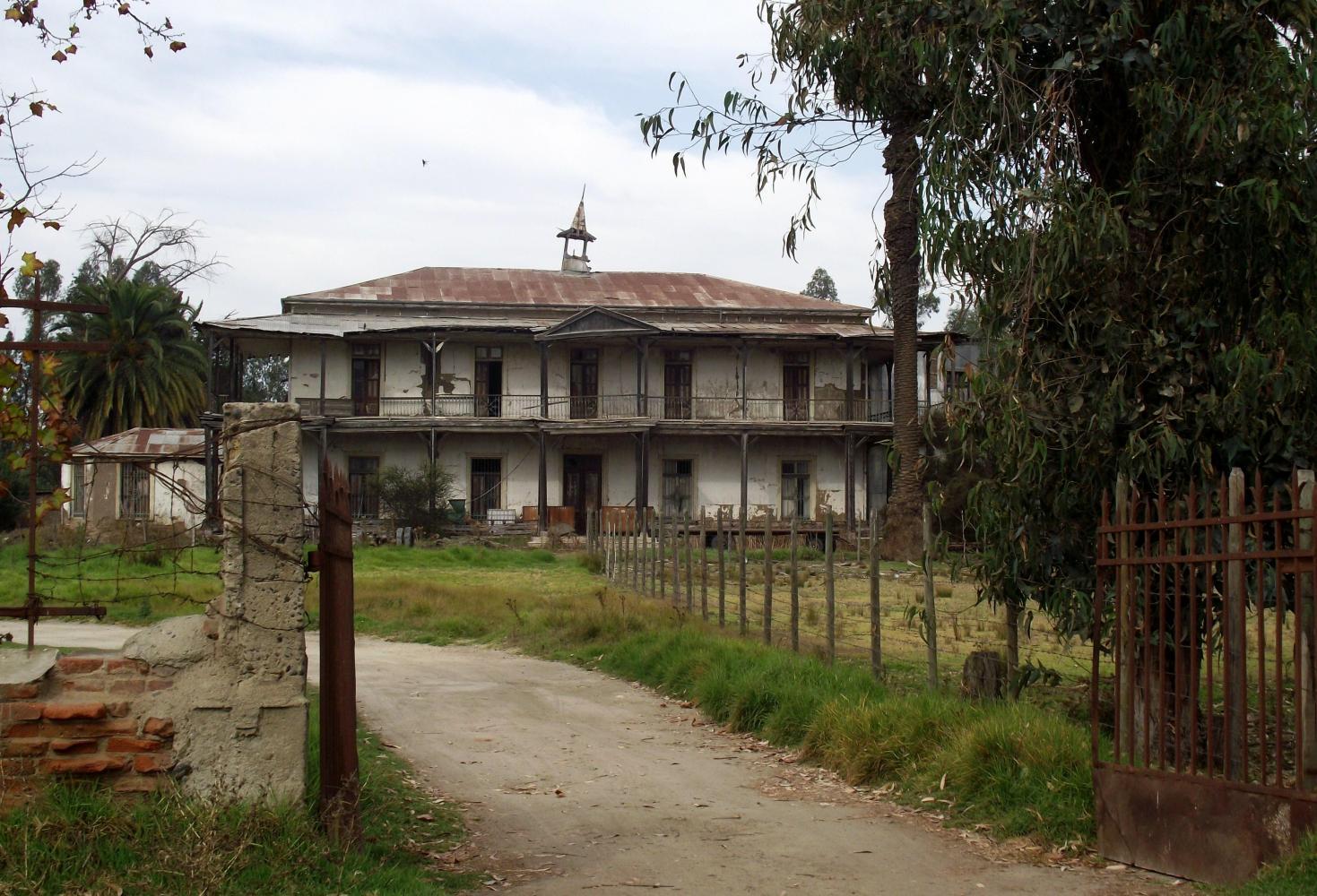 Beyond Melipilla the countryside was flatter: where cattle grazed on lush pasture visible in occasional gaps in exuberant hedgerows which grew on either side of the road. And passing through a village I stop to photograph an interesting old derelict villa.