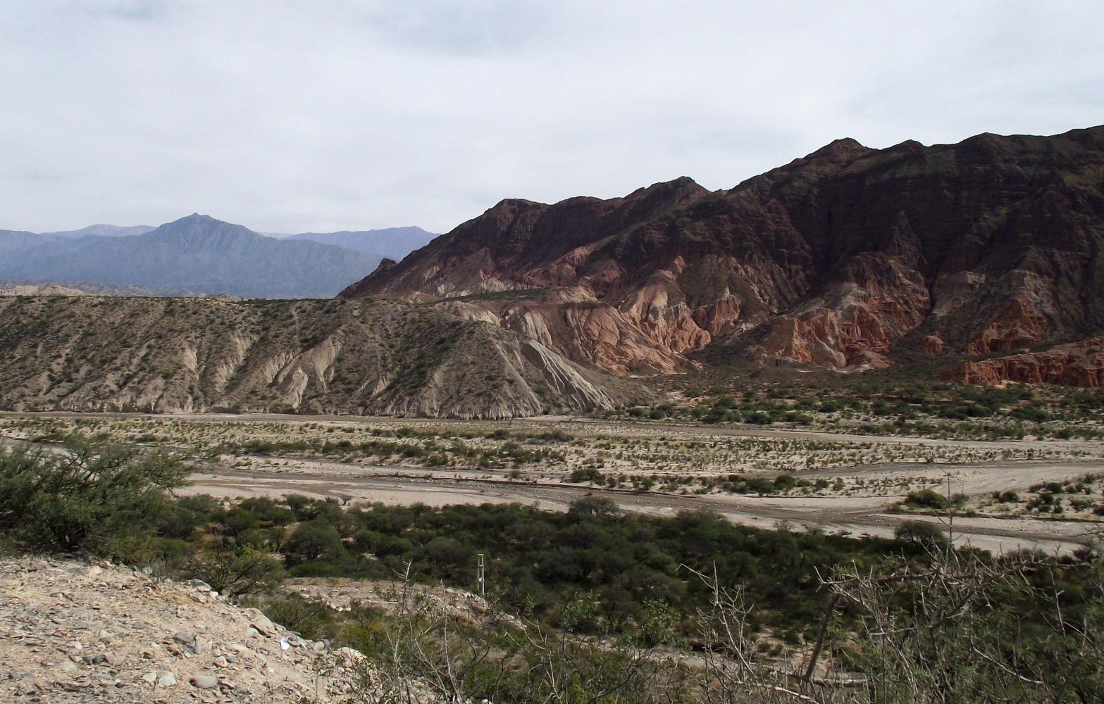 Today I battle with the wind for the first hour. I know now I won't be making Cafayate by Sunday. But then, just as I gladly reach where the road onwards is paved, the wind drops. Ahead the road is straight and long towards hills which I never seem to make any progress towards.