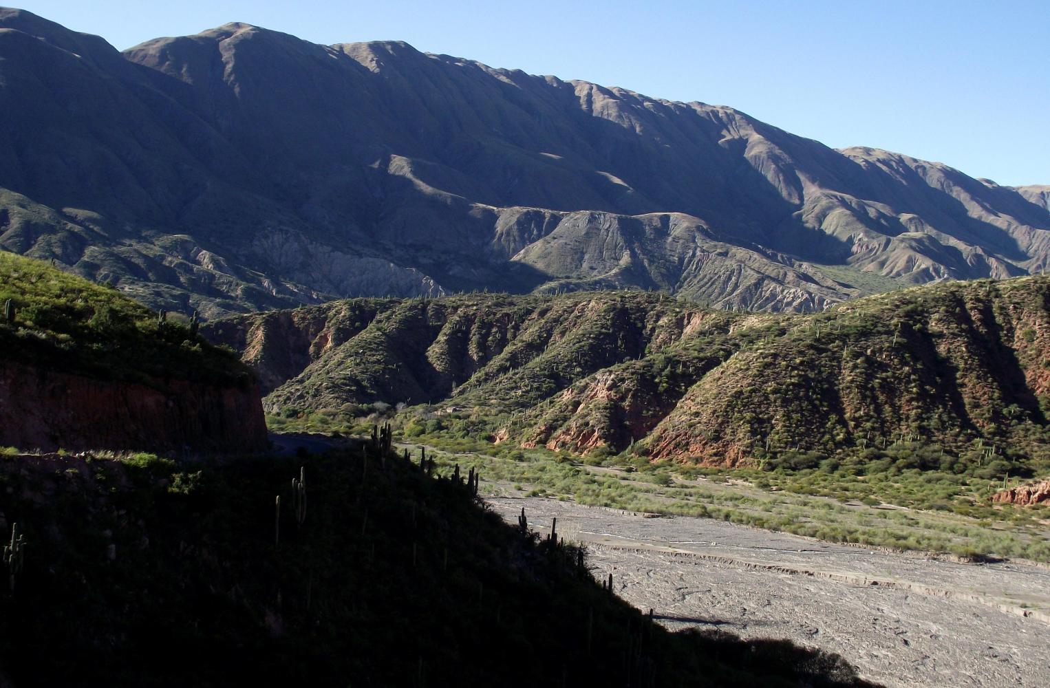 I had ten days or so to relax in Salta before my flight home and I staid in a backpacker's hostel. Having spent so much time alone in the past months, I wasn't the most sociable person in the first couple of days but little by little I came out of my shell and got to meet some wonderful fellow travellers. I also had the desire to see once again some of the incredible landscape in the Provence of Salta. I have already cycled most of the roads and visited places such as San Antonio de los Cobres and Cachi to name but a few, so I took the easy option of booking an excursion tour through the hostel which turned out to be a great day out with five others making up the tour group including two Swiss, a German, an Englishman and a fellow Irishwoman. Our driver was also a knowledgeable guild pointing at interesting things on the way and telling us the history. The Tour to the Clouds as it is called goes to over four-thousand metres. The only place I didn't like on this excursion was the drive across Salinas Grandes, a salt lake as I don't see the attraction it being a blank white plain: Furthermore I didn't have sun-glasses so I'd to cover my eyes as the light of the sun is blinding. Other than that I enjoyed the Quebrada (gorge) de Toro and of coarse there were lots of photo-opportunities...