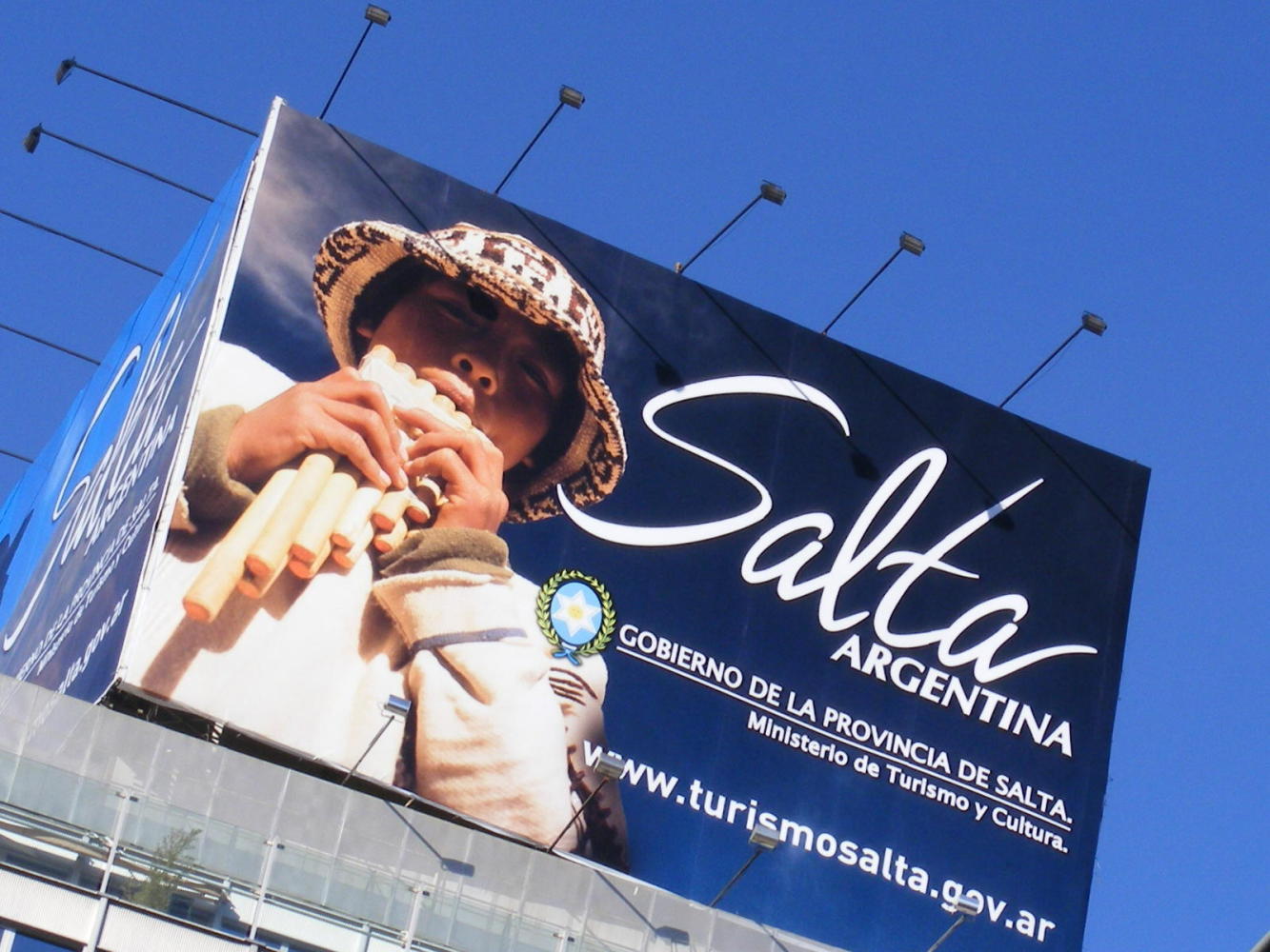 Back on the bus and moving again, looking out at countless city-lights and trailing red lights on cars ahead on the highway before sleeping; waking in daylight faraway on a long straight road across parched bush covered country. During the long morning, the bus past through provencial cities, Santiago del Estero, Tucuman, and other less important places. From eleven o'clock, The Andes were in sight, but barely visable in a haze of sweltering sunshine, apart from high shimmering ridges off to the left. The road rolled on; straight up and over small hills in the Provence of Salta. And given that I had been nearly a day on the road, it was good when leaving the town of General Guemes to see a sign: Salta 45km. The remaining kilometres meandered on a divided highway along a valley with brown bush clad hills either side and high mountains ahead; before turning a corner and descending to the city of Salta spread wide over the Lerma Valley.