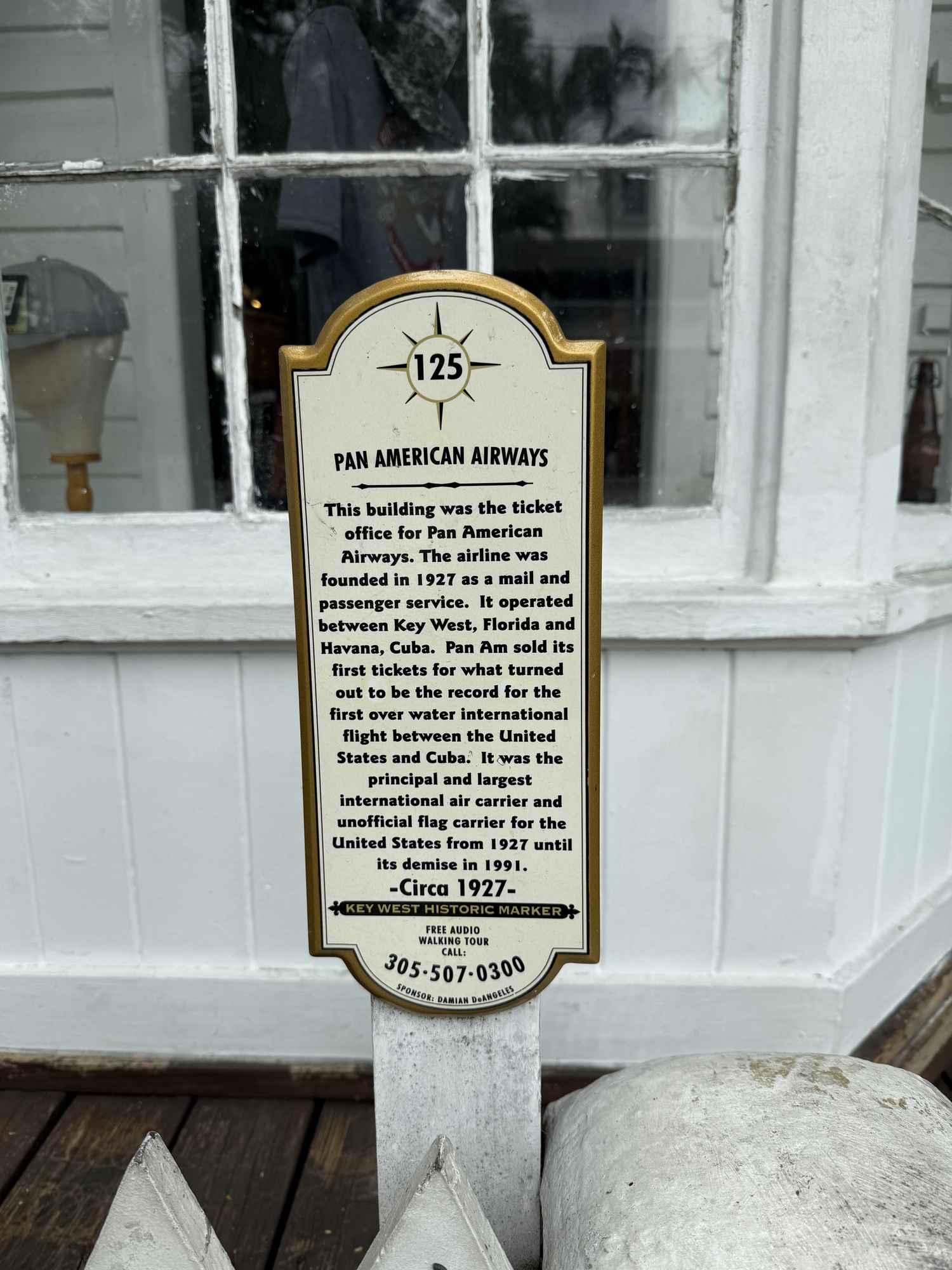 This location, at 301 Whitehead Street, is also where Pan Am Airlines originated. Pan Am was the largest of all international airlines in the US between 1927 and 1991. Tickets were sold out of this house.