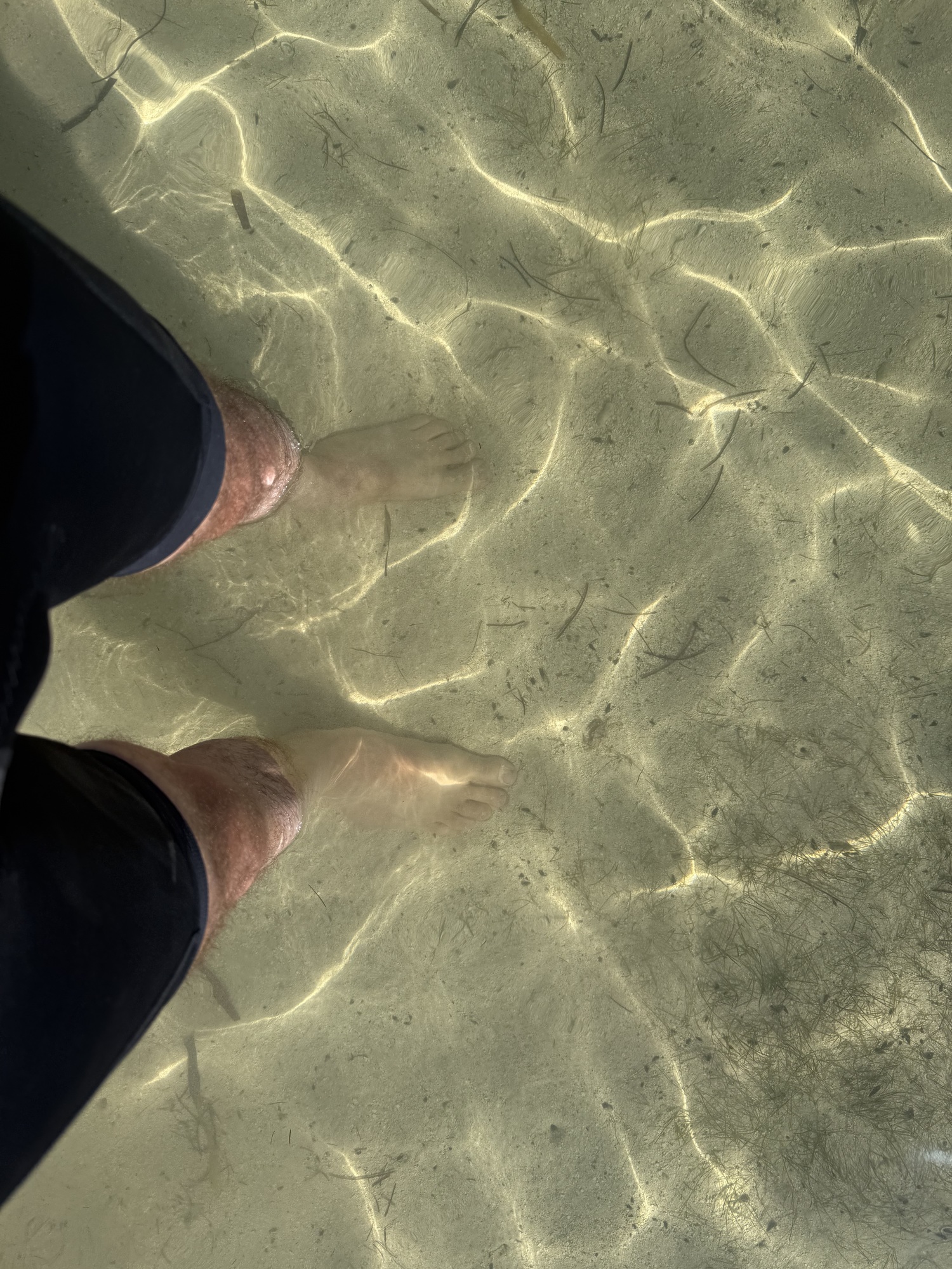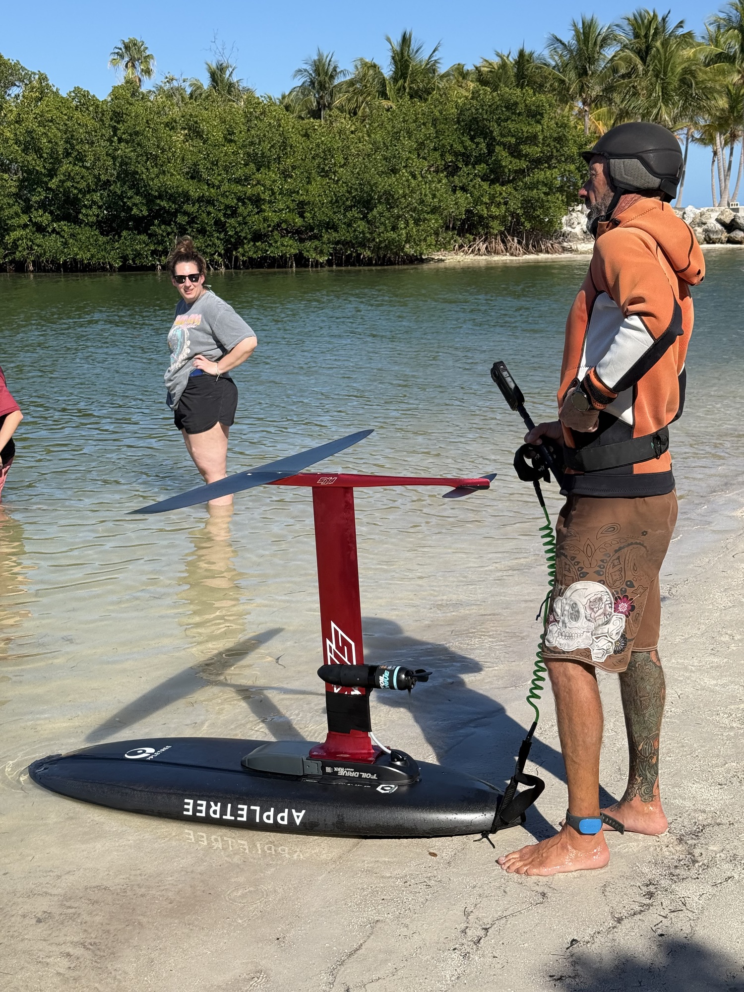 I saw this guy over at one of the picnic tables and wondered what kind of contraption he had. Some kind of flying drone? I then followed him over to the water where he continued prepping, and learned it's called a foil board. I also asked about the ankle bracelet, and he said he has to wear it because he's still on parole.