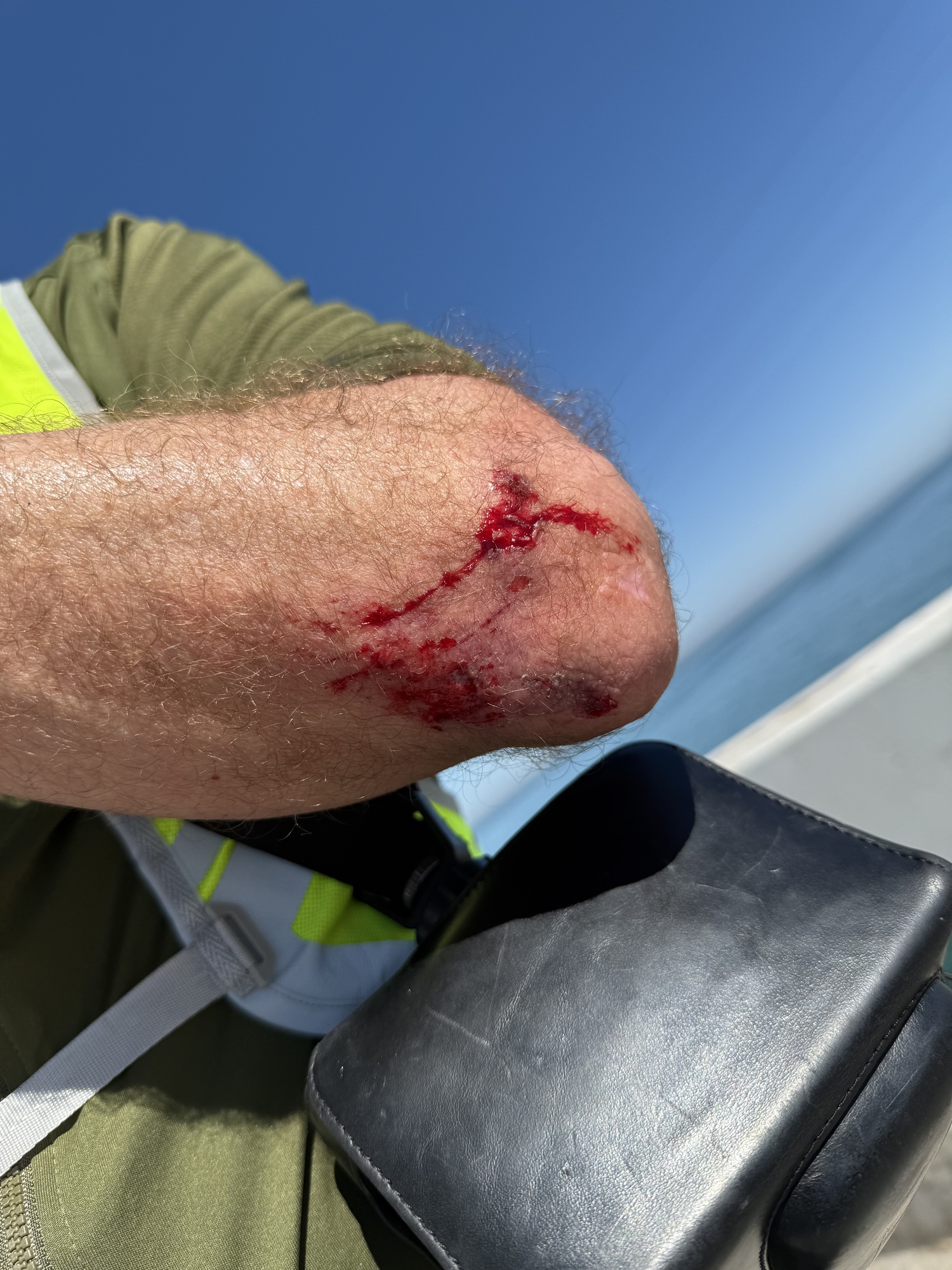 I felt really fortunate that the only injury was a minor excoriation to my elbow, and even more fortunate I was wearing a helmet.