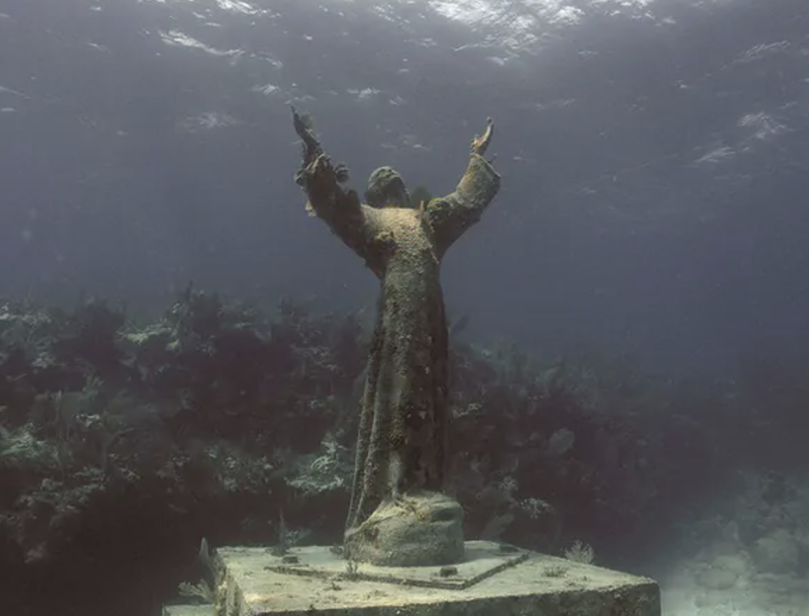 On 25 August 1965, a nine-foot-tall bronze statue of Christ was lowered into 25 feet of water off the coast of Key Largo. It's called the Christ of the Abyss, and, after plenty of debate, was submerged off the shore of John Pennekamp State Park. It's only the third of its kind cast from the original Italian mold, and arrived in 1965 but had to wait until the huge concrete base was constructed. Eventually, the taller-than-the-actual-Jesus statue was lowered to the base and attached. The base and statue stand in 25 feet of water.