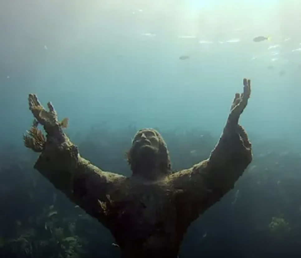 Some folks might consider it sacrilegious to submerge Christ of the Abyss into 25' of water, but not as sacrilegious as Andres Serrano's controversial work of "art" a few decades ago.