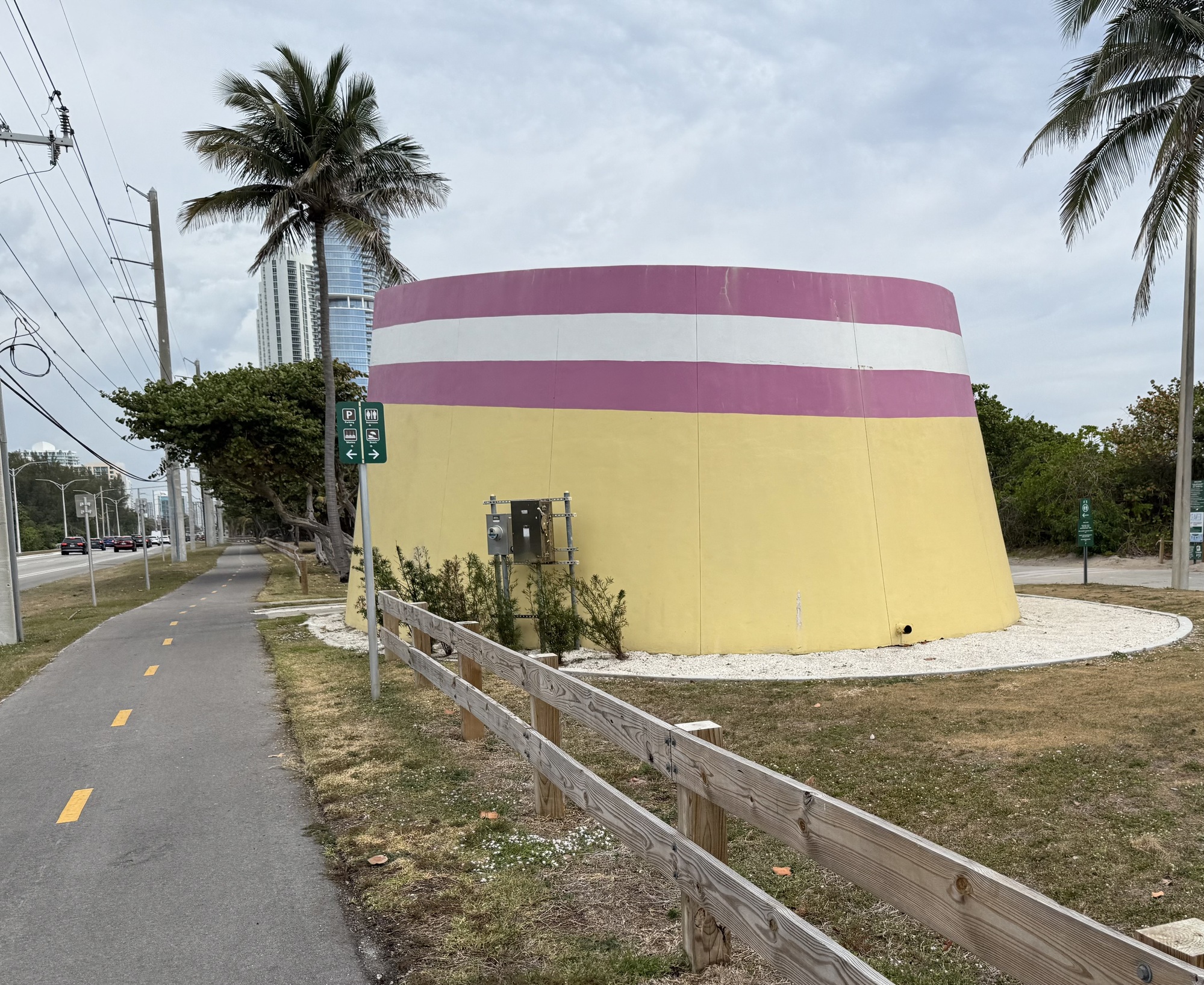 I saw several of these along the beach, each one a different combination of pastel colors, and wondered what they were until I got a good look from the other side: public restrooms.