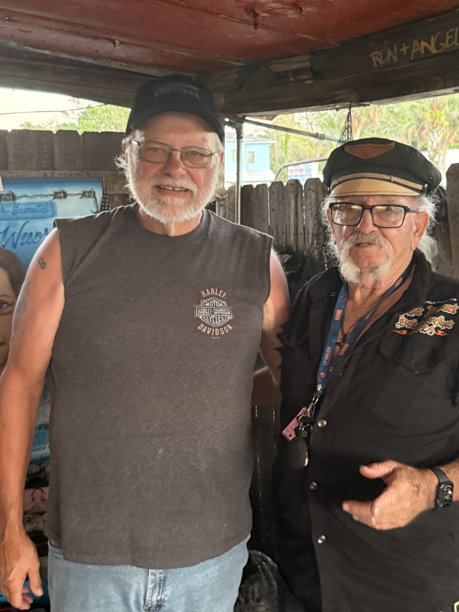 We walked to the area behind the bar, which was huge. In its heyday, the crowd spilled out to the back where there were places to buy drinks there as well, and a stage, but now that Al is getting older he just can't keep up and scaled everything back. There were even motorcycles hanging from the massive oak trees which shaded the place, but they got blown away with one of the many hurricanes that came through.