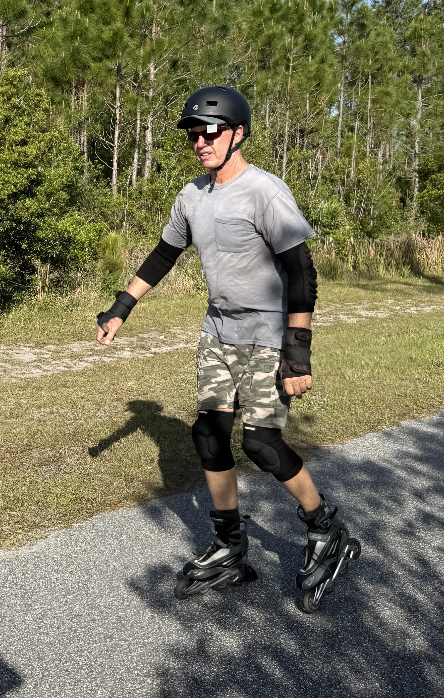 There was a man stopped on the side of the path next to his e-bike so I pulled over to ask if everything was okay. He appeared to be in his mid-70s with a bit of a belly and a couple of week's worth of a scraggly beard.