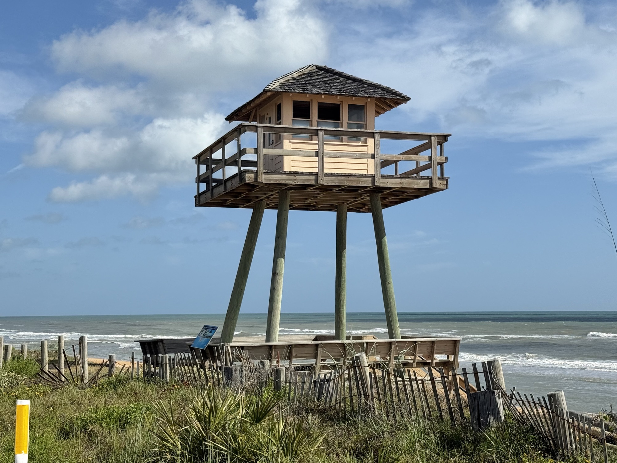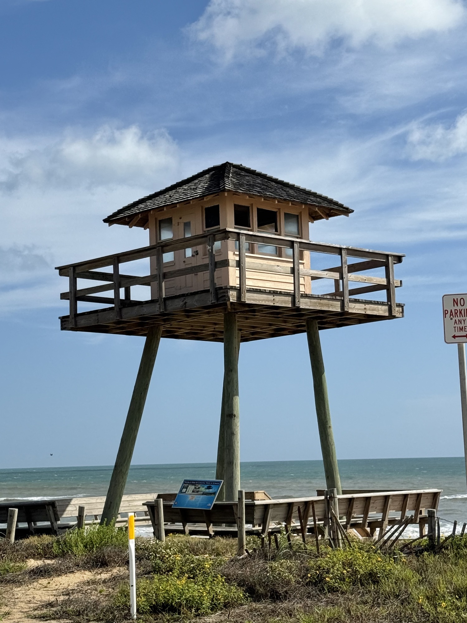 Along the coast I found this submarine watchtower, built during WW2. There were originally about 15,200 built along the Atlantic, Gulf, and Pacific coasts, manned by civilian lookouts who volunteered with the Ground Observation Corps, a defensive force established by the federal government. The volunteers were armed with binoculars and a telephone, ready to call the Coast Guard upon seeing a threat.