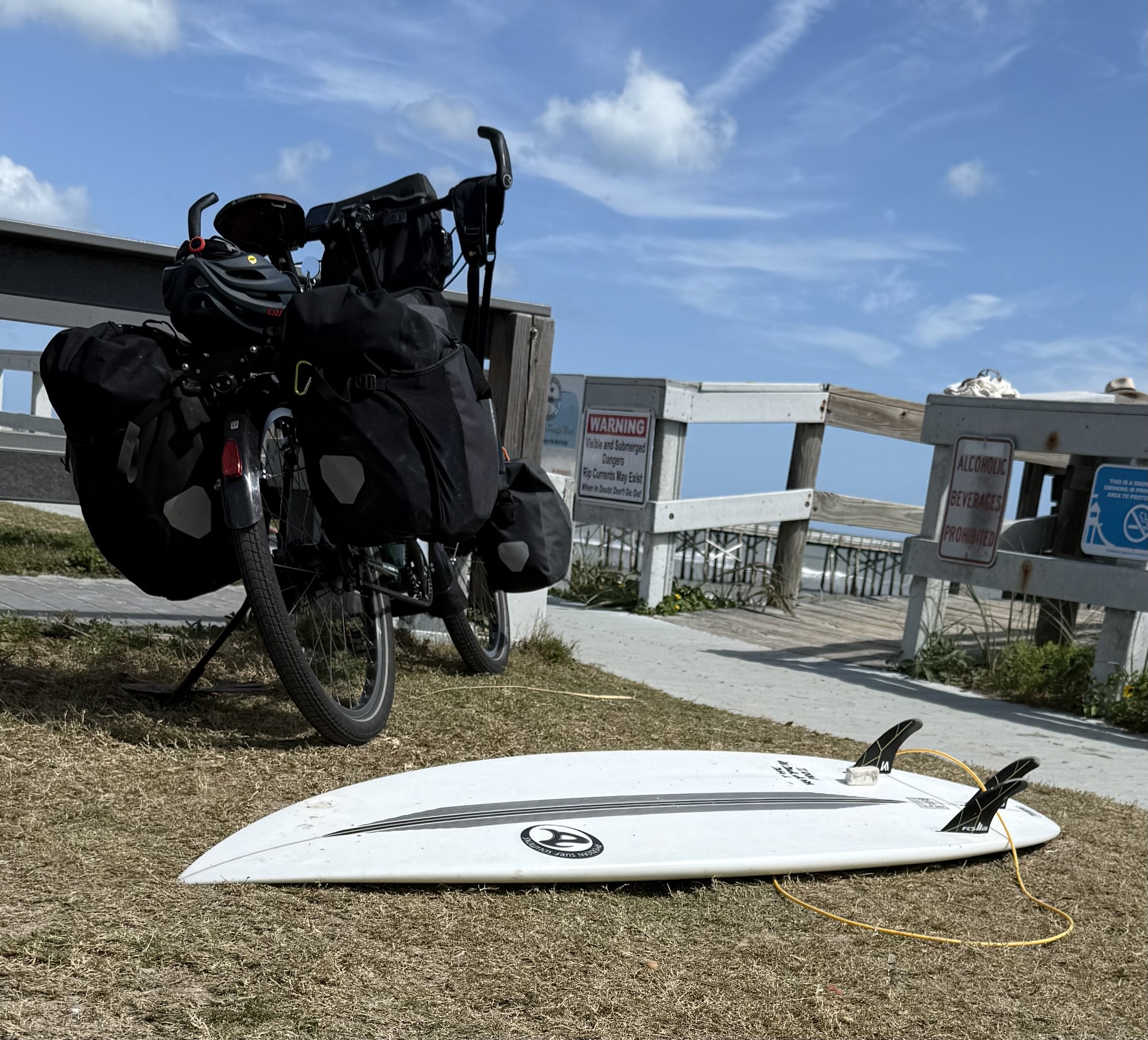 In Flagler Beach I stopped to eat a protein bar and noticed a commotion across the street, so I went to check it out. As it turns out, there was a surfing tournament going on so I hung out there for half an hour or so.