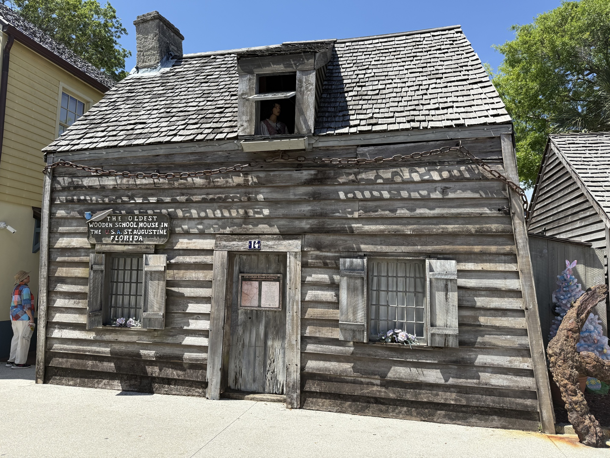 St. Augustine claims this as the Oldest Wooden School House in the U.S. The exact date of construction isn't known, but it first appears on the 1716 tax records. The mannequin in the window looks sort of creepy.