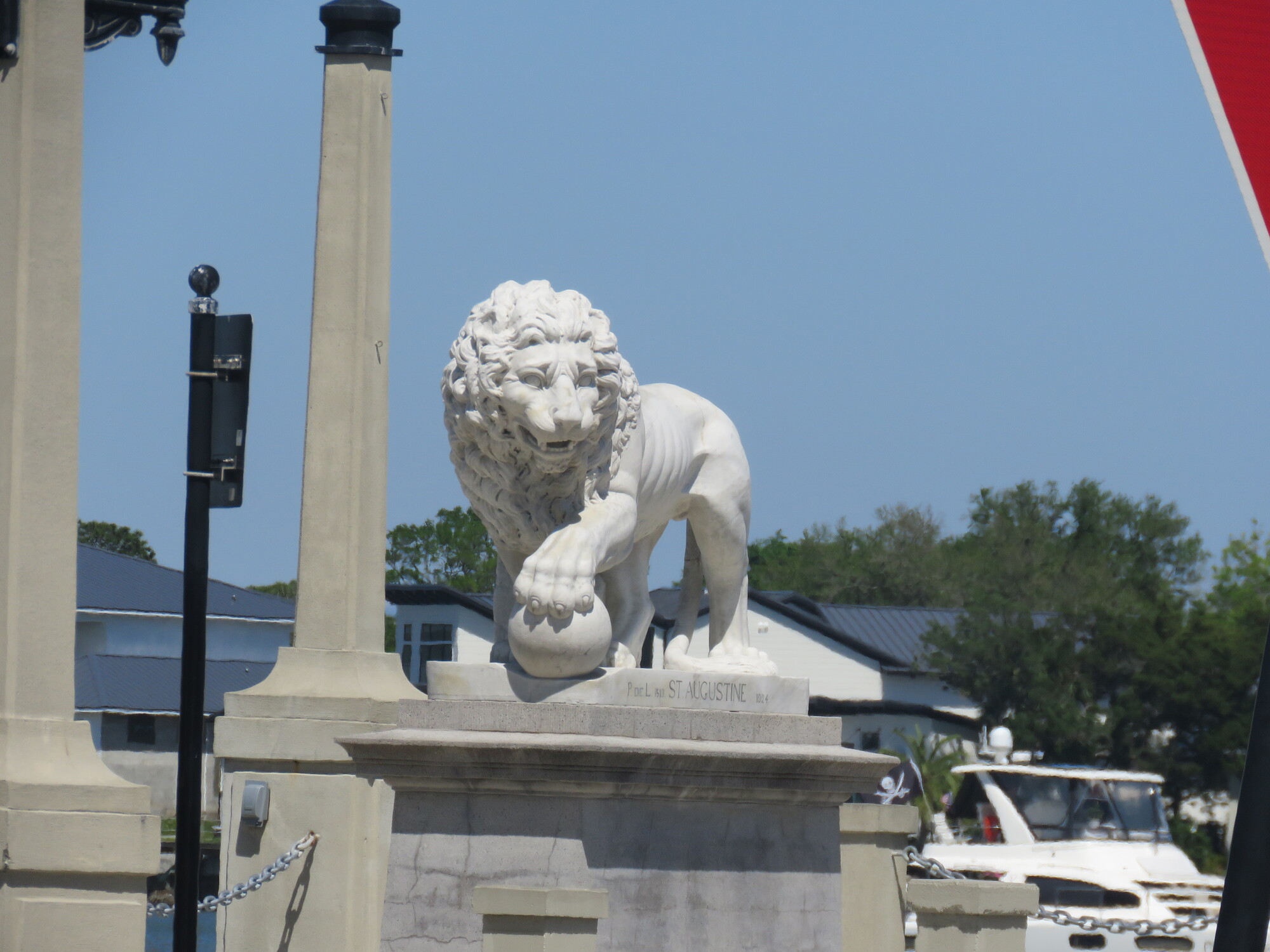 The famous Bridge of Lions, a double-leaf bascule bridge that spans the Intra-coastal Waterway connecting Anastasia Island to downtown, features a pair of Medici lions made of Carrara marble.