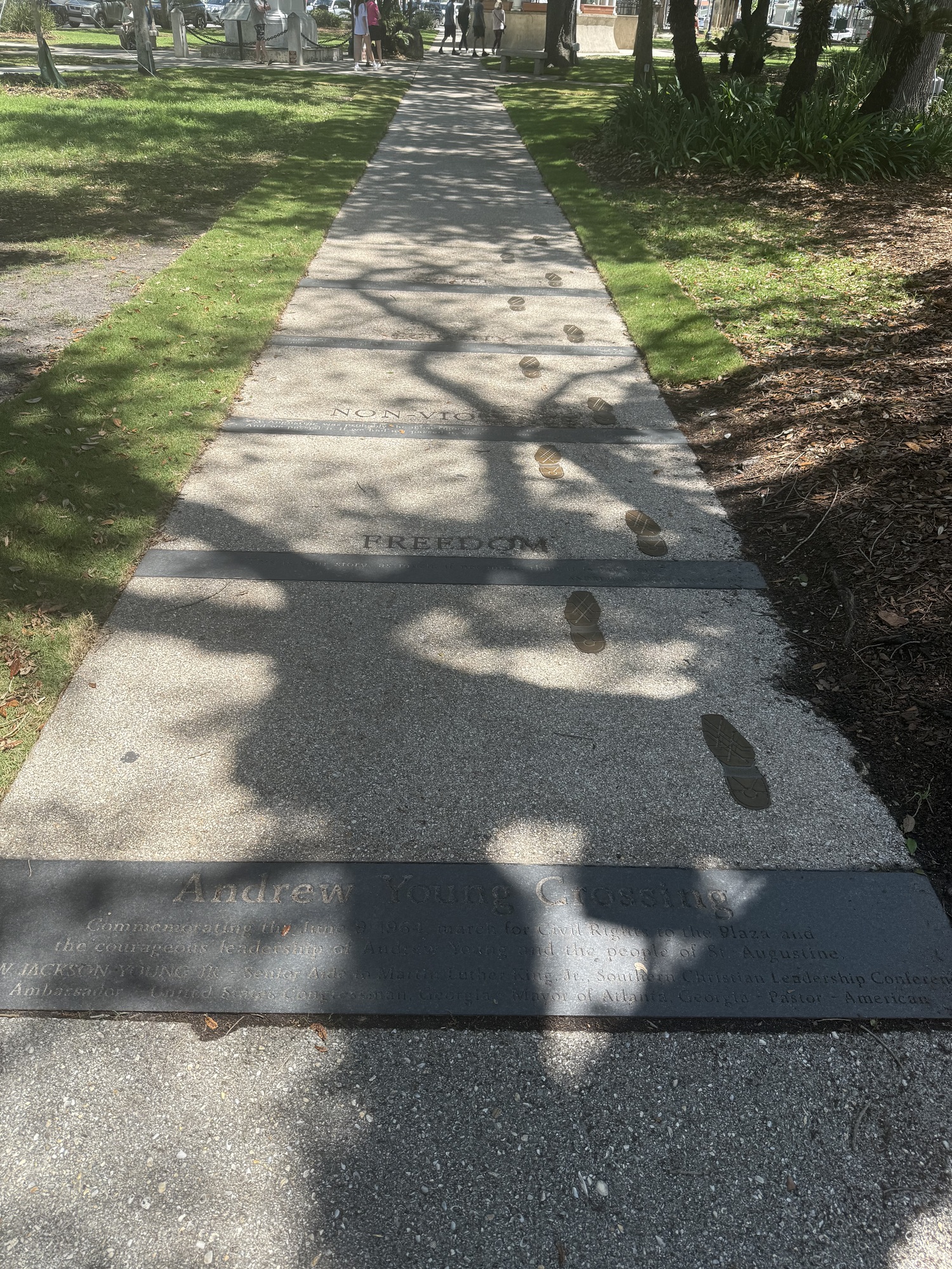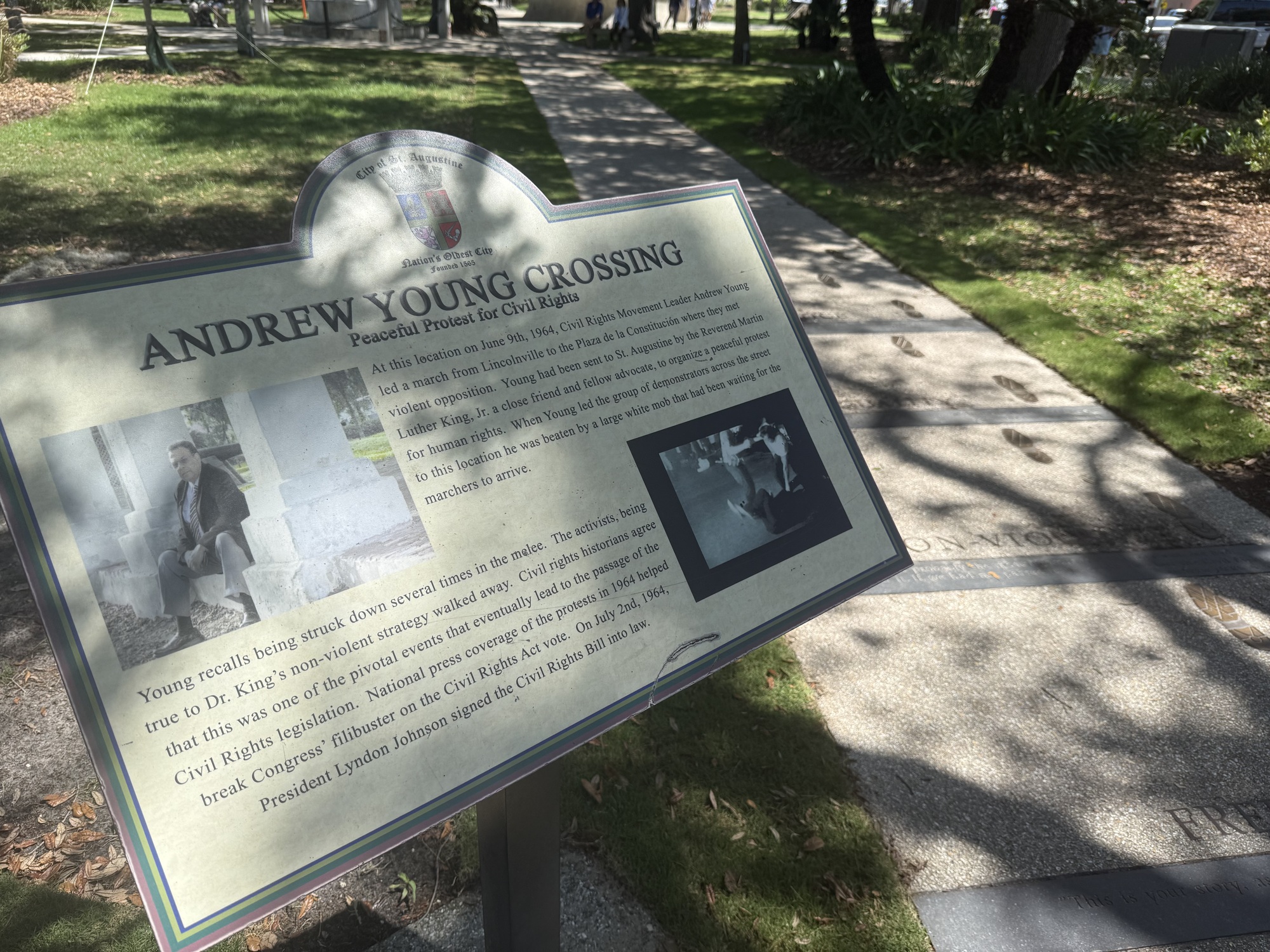Forty seven years later, St. Augustine put ink on the bottom of his shoes, after which he walked along a 20-foot carpet of paper. They turned them into a set of these bronzed footprints. Young went on to become the mayor of Atlanta and later a U.N. Ambassador.