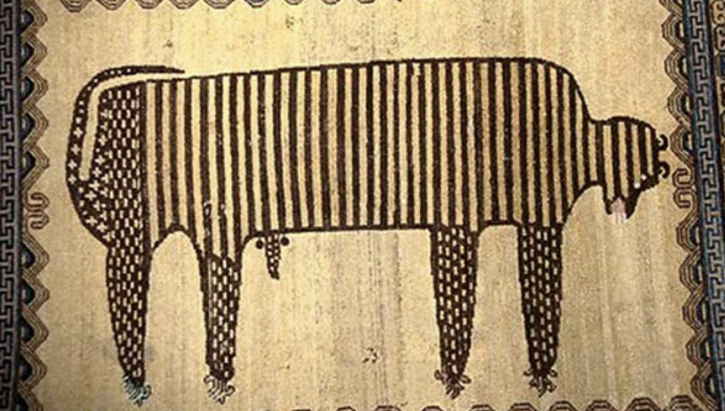 As if that wasn't weird enough, the rug itself was found to be more than 2,400 years old, making it, arguably, the oldest rug in the world (there are some Persian rugs that also claim that distinction). The rug depicts a large stylized feline, much like the African wild cat. From my extensive medical training, I believe it's male.