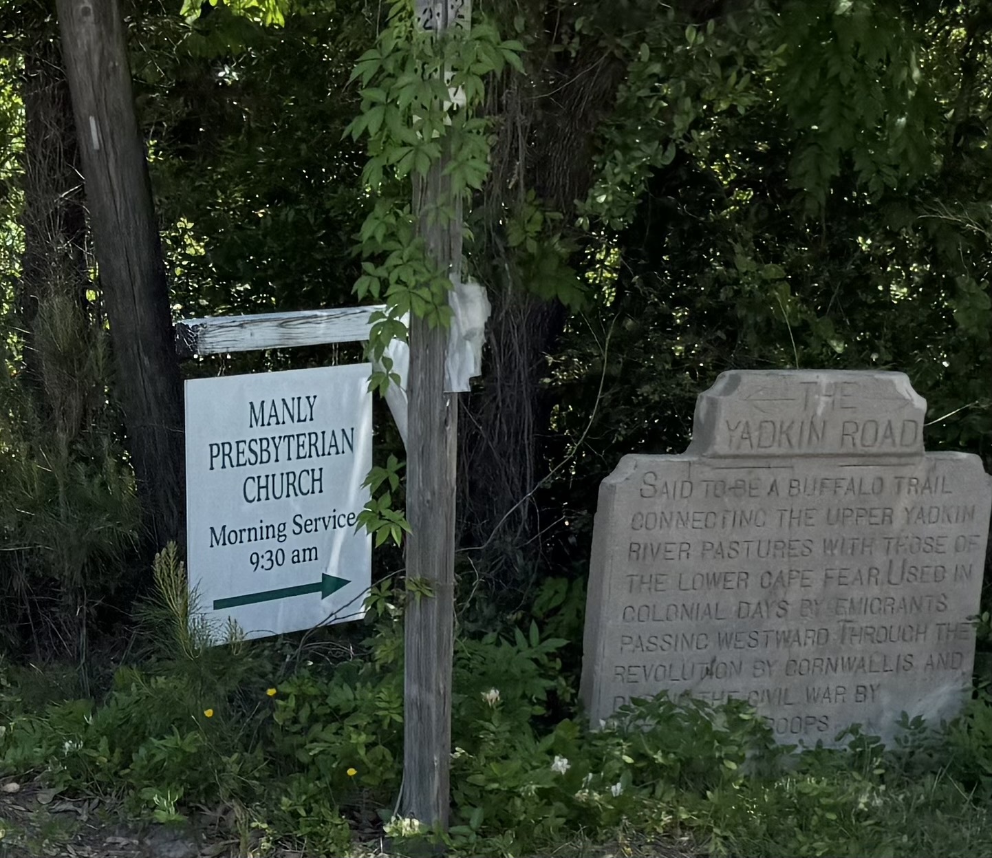 Leave Southern Pines on Pee Dee Road, then Camp Easter Road, then Holly Street to Vass.