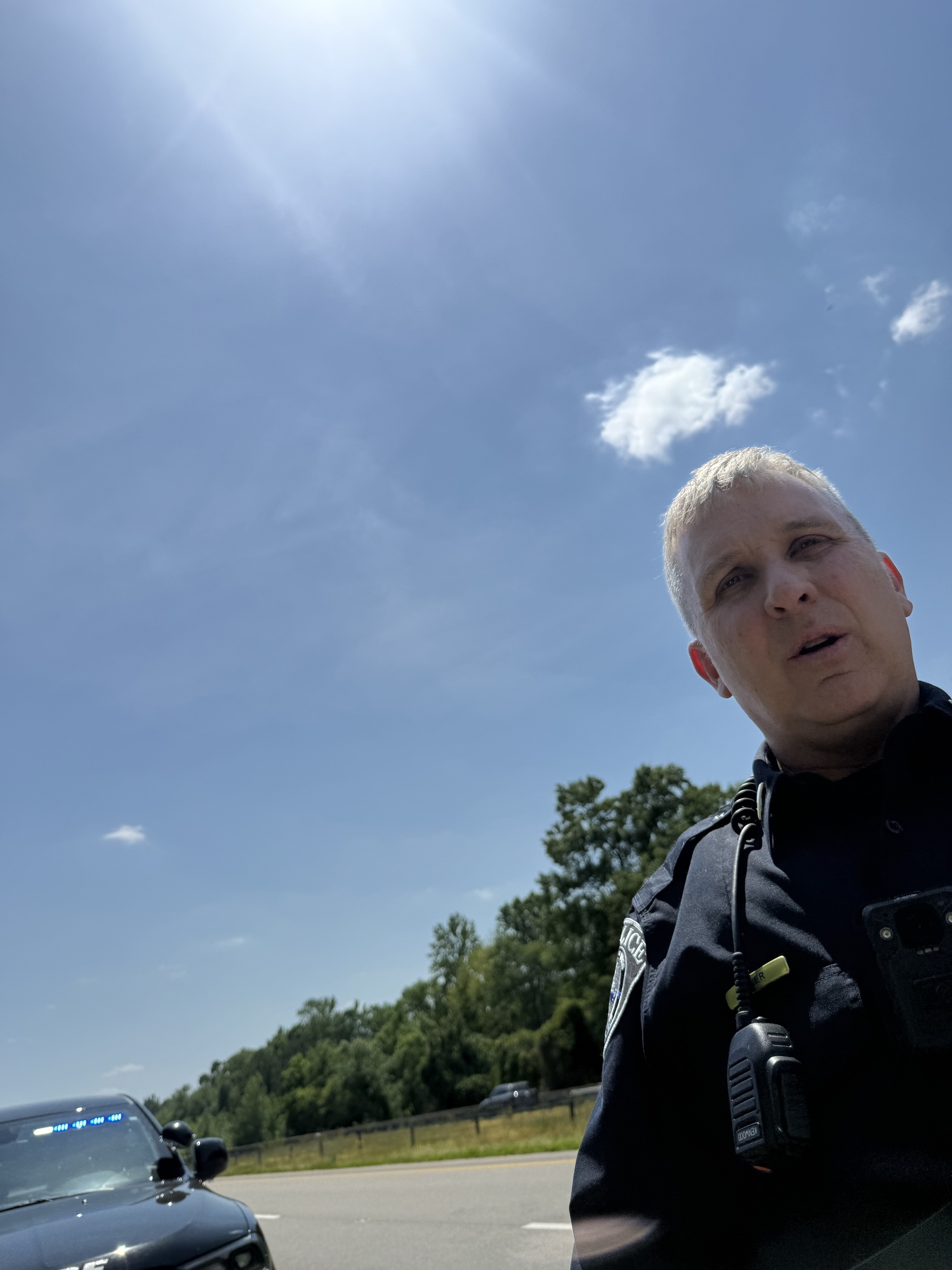 An officer got out and slowly approached. When he came up to me he said,