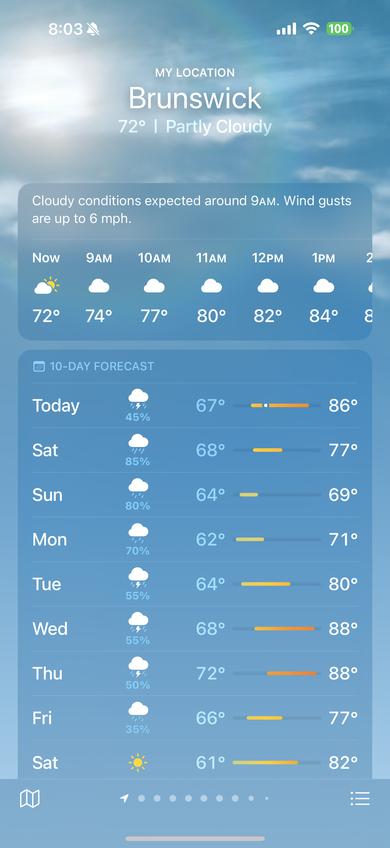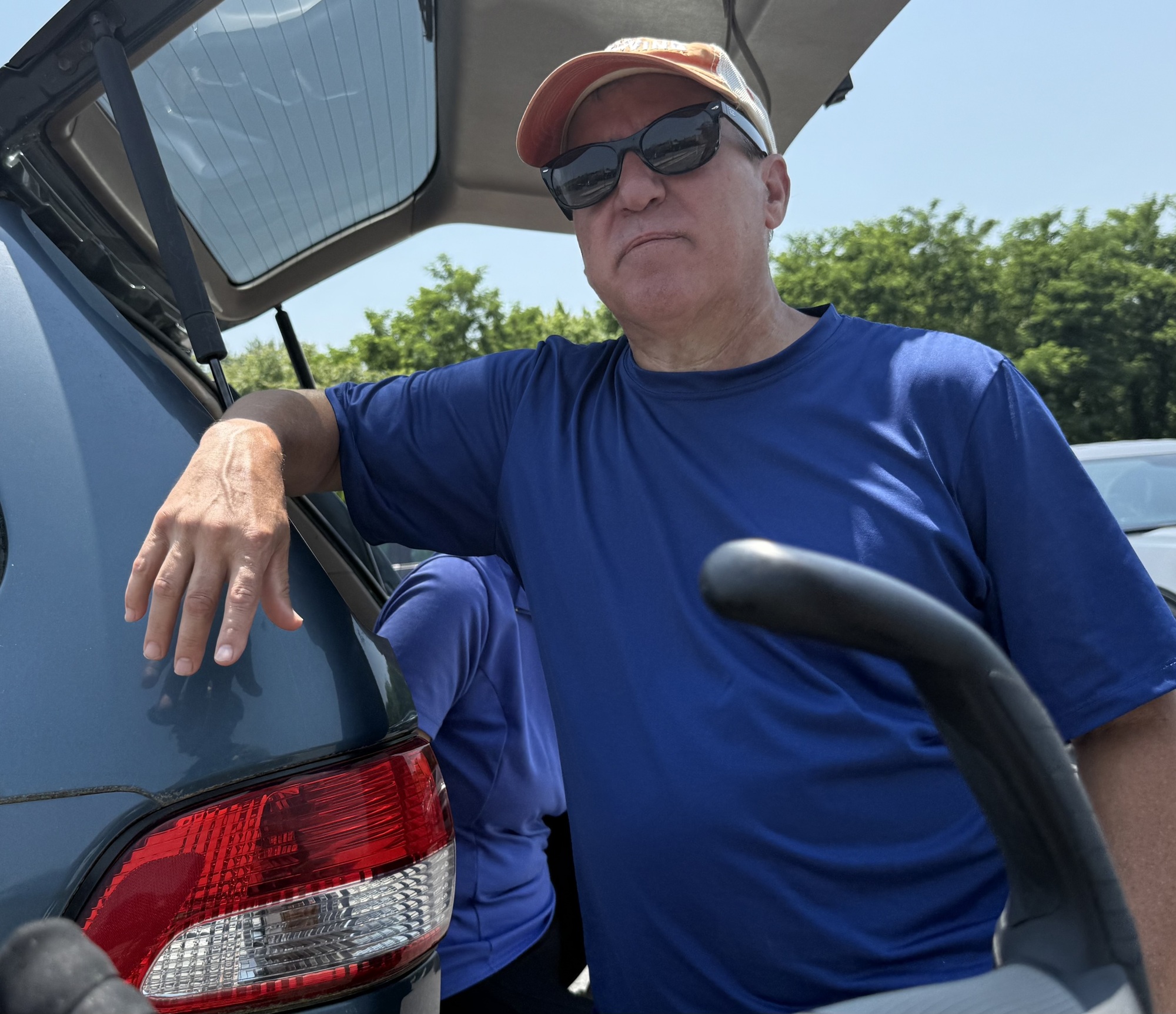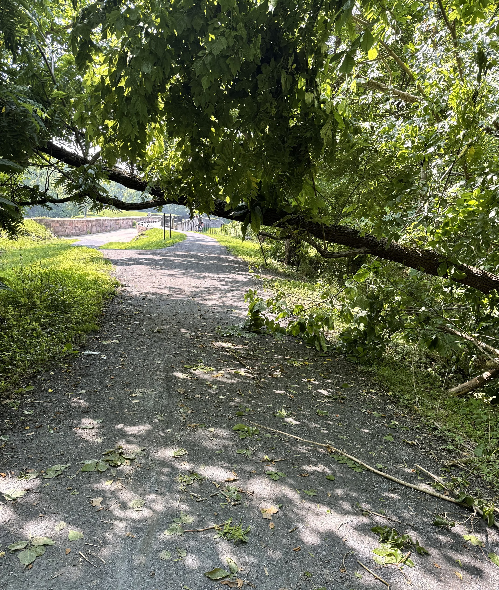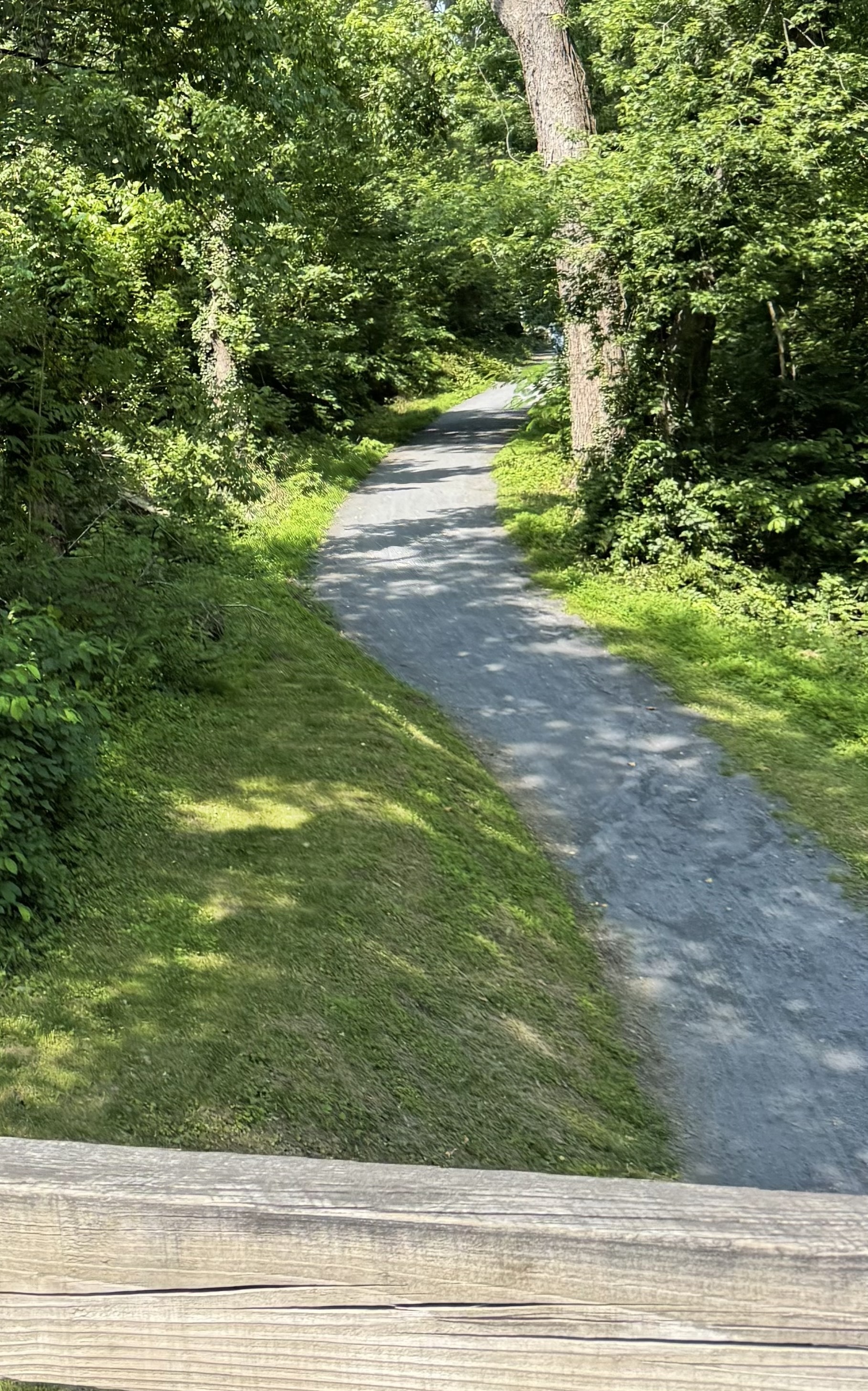 So, when I arrived in Brunswick, my destination for the day, I was chagrined to see a train blocking the path. A stopped train. Then I happened to look around and noticed that people weren't waiting comfortably in their air-conditioned cars. Instead, they were spread-eagle in their seats, with limbs akimbo and legs sticking out of open windows, their mouths open like dying fish gasping for air on a pier. In the corner of the parking lot I saw a cluster of people huddled in the shade of a tree like vampires avoiding solar exposure.