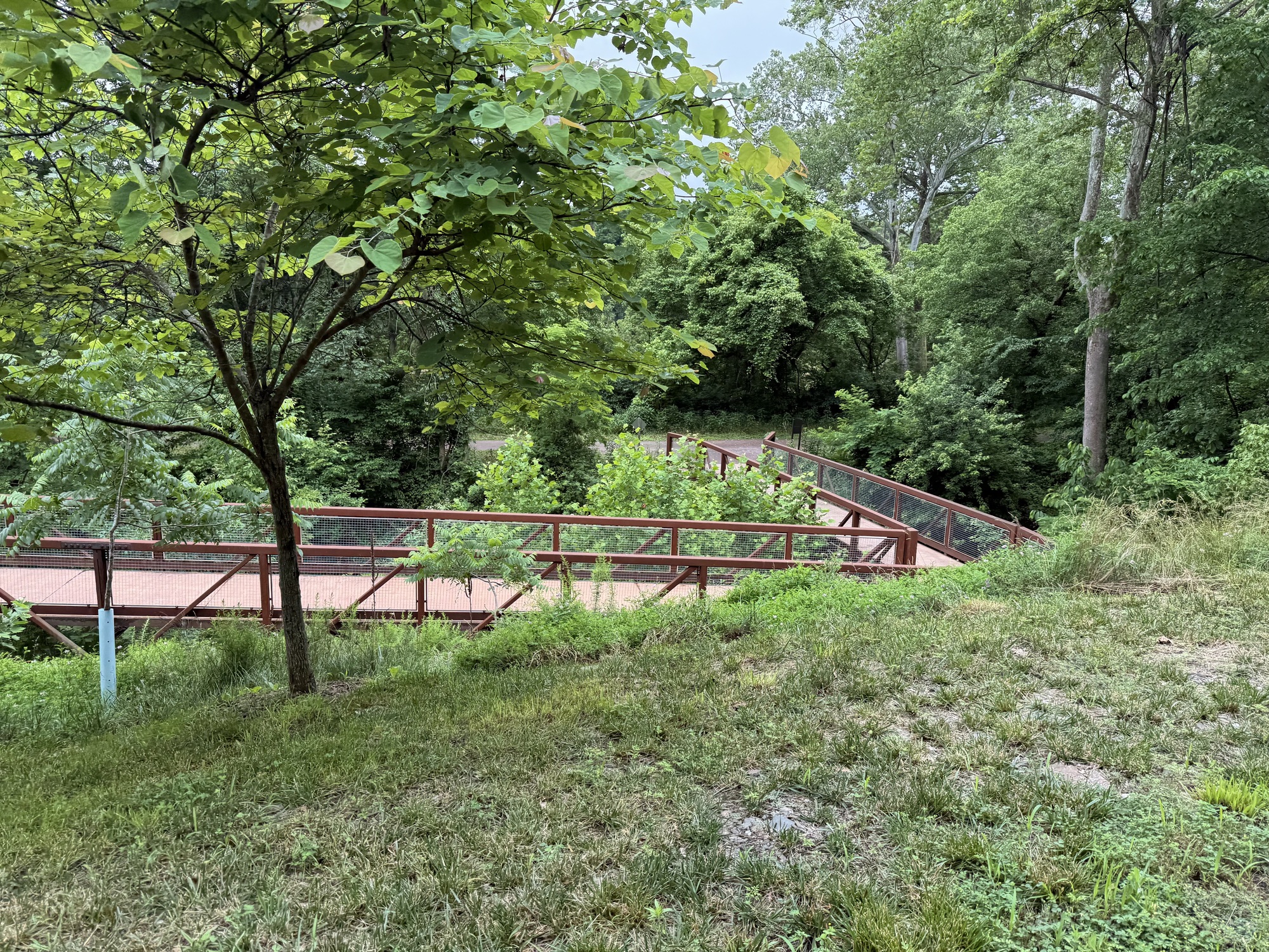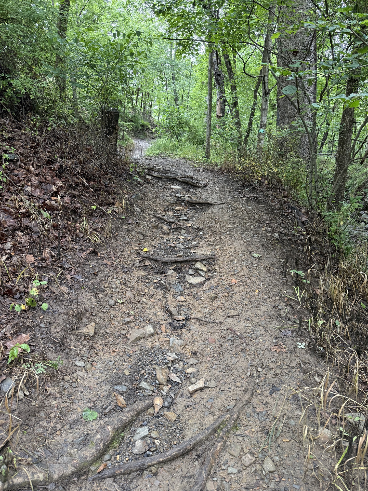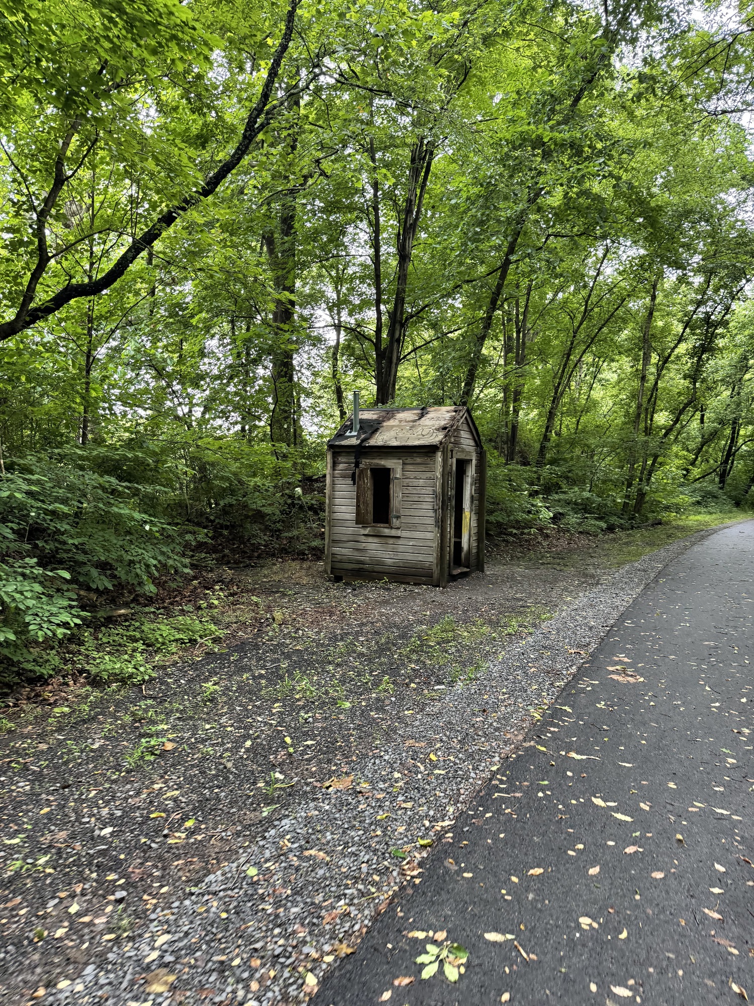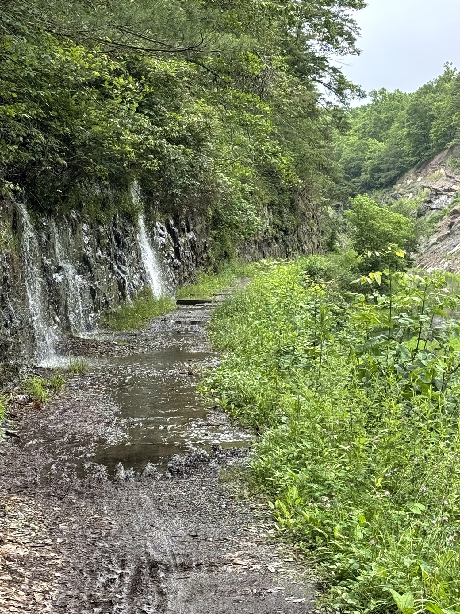 There's no way I could safely pedal through the Paw Paw tunnel. The floor was not only uneven, but pocked and slippery. If my handlebars bump the wall, down I go. If my handlebars bump the wooden rail, down I go. On the right side of the railing is a short fall to some water the color of shiny tar. I used my bike like a scooter, standing on the right pedal and pushing myself along with my left leg.