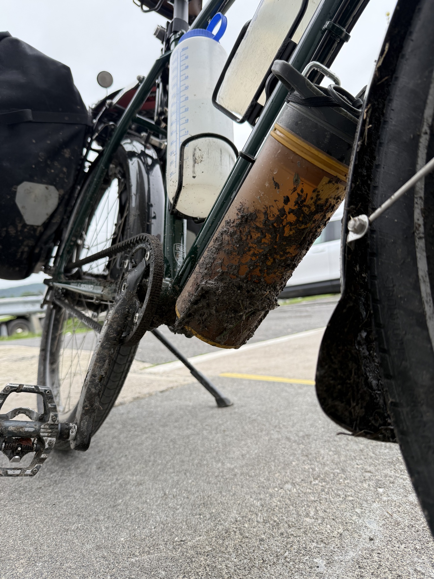 In my fatigue, I kept drinking from my lidless water bottle. I didn't even think about the fact that contaminated mud could easily have splashed up into it while I was riding. We'll see what happens....