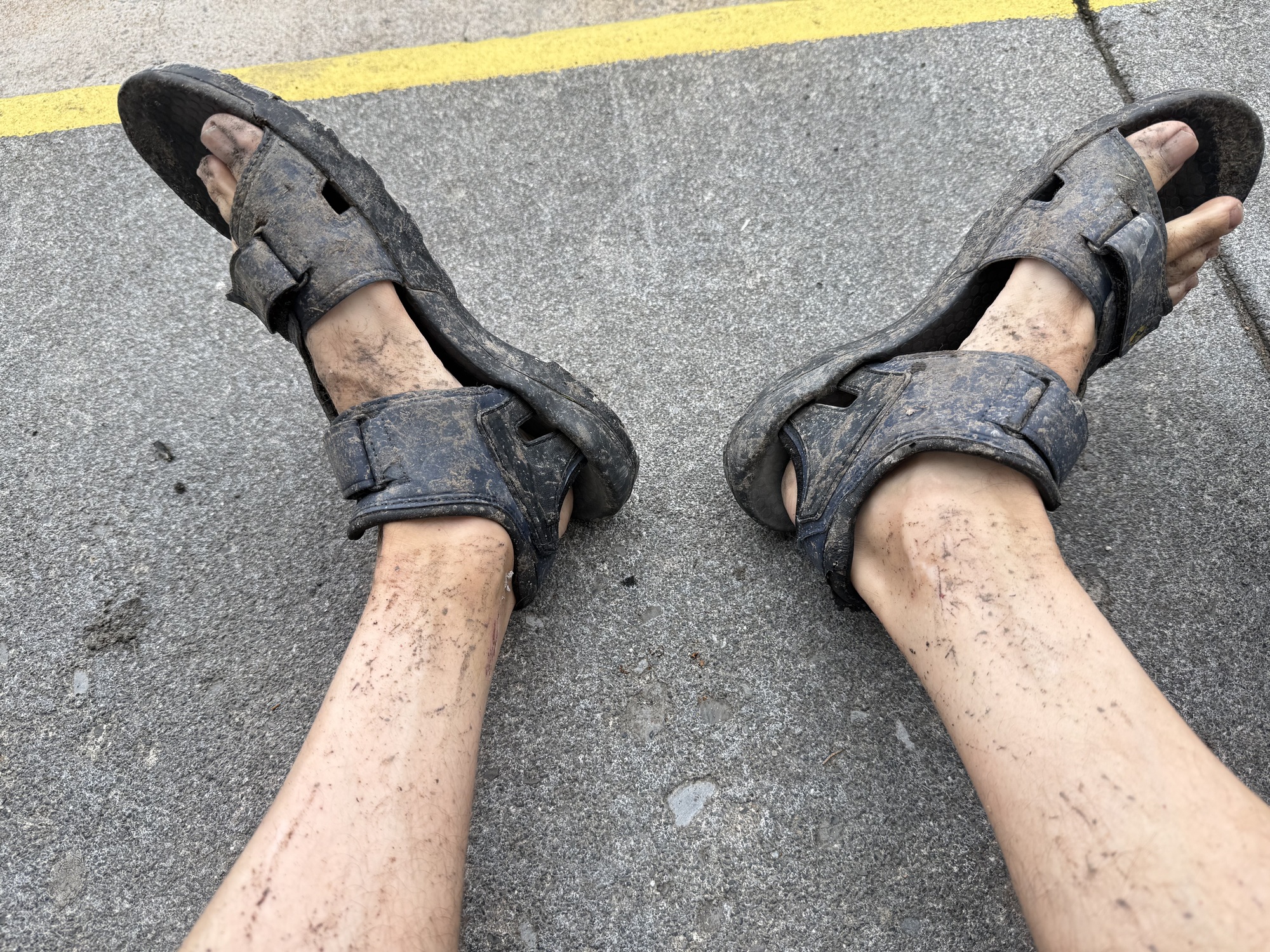 It was really slow going because my tires kept slipping and sliding. I was squeezing the handlebars like a politician gripping a coin, and by the end of the day I needed a crowbar to pry them off. A loose grip or a lapse in attentiveness, even for a second, would've resulted in a face full of mud.
