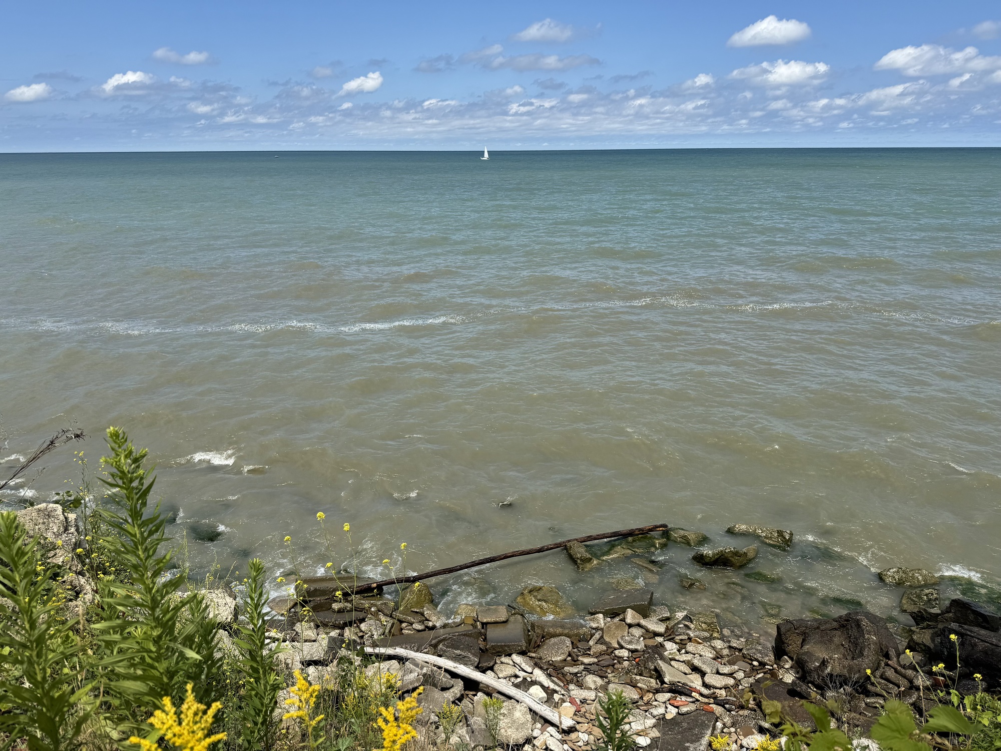 Today's ride was almost exclusively along Lake Road, which hugs the shore of Lake Erie. I was expecting more traffic because it's right on the coast, and there was plenty, but not as much as I'd expected. Sunny, and with a temperature of 72 degrees and a cool wind (side/tailwind) coming off the lake, it was a near perfect day. If, if only the traffic wasn't there, and... an...