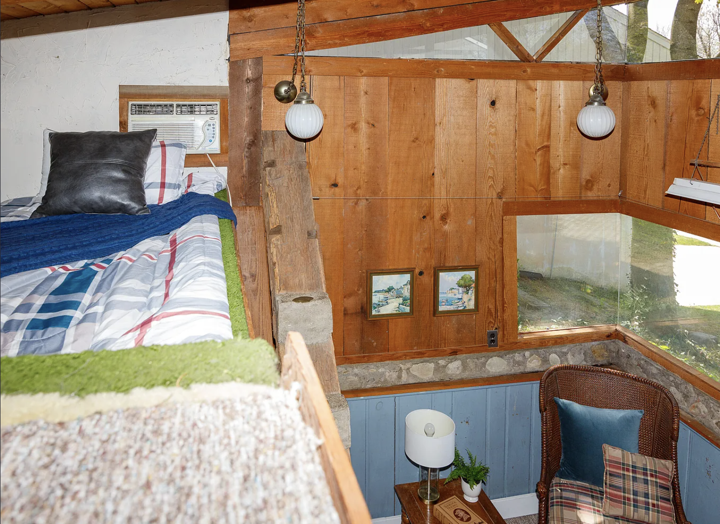 It's open and airy, with the feel of a Frank Lloyd Wright house, and even has mitred-glass corner windows.