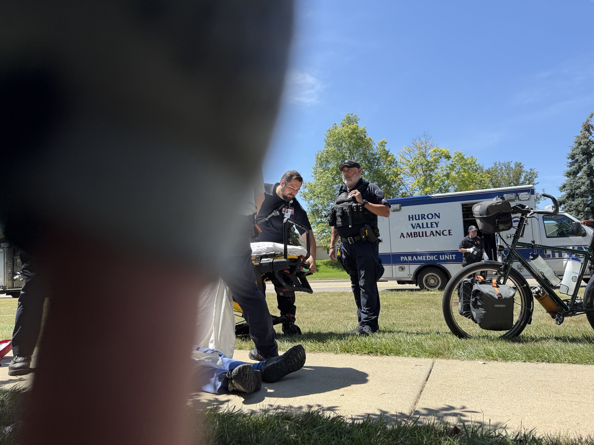 Just before crossing the Ann Arbor-Saline Road, I saw something in the corner of my eye, someone who got a bit too inebriated and fell asleep on the side of the road. It wasn't the first time I'd seen it, and I kept riding.