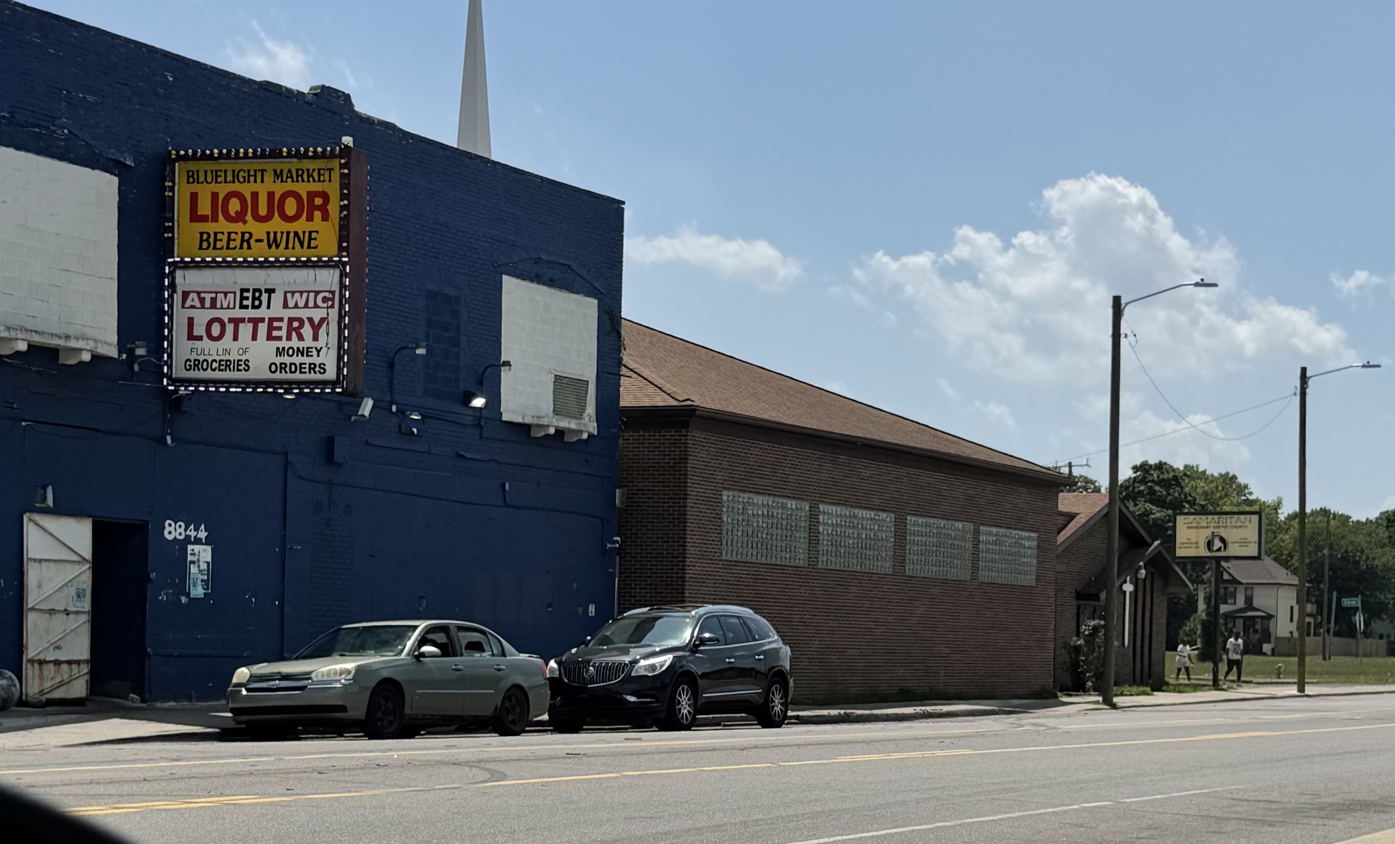 Places with names like "The Samaritan Center" and "Mission Outreach" peppered the streets - I saw at least a dozen. Pawn shops, check cashing services, and auto body repair shops were the only businesses without shuttered windows and doors. Of course, the liquor stores were open, and there was at least one on every block, and sometimes two. Even many of the churches were boarded. Billboards let me know the best personal injury lawyers and who to call if I need to be bailed out of jail.