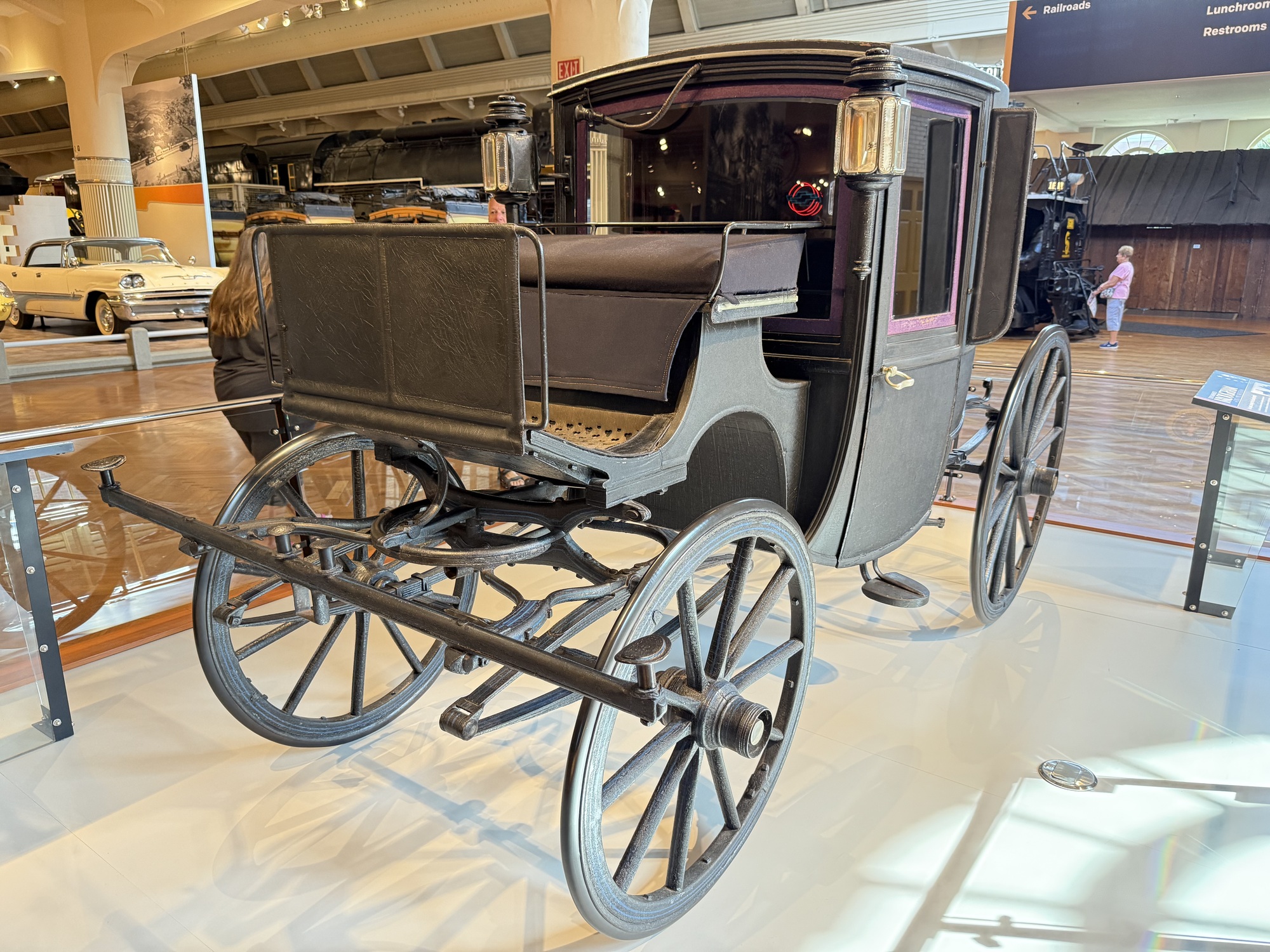 Teddy Roosevelt didn't particularly like automobiles, and rarely used them, preferring instead an old fashioned horse-drawn carriage. This one isn't custom-built, but simply the kind of transport used by people at that time who wanted to show off their wealth.