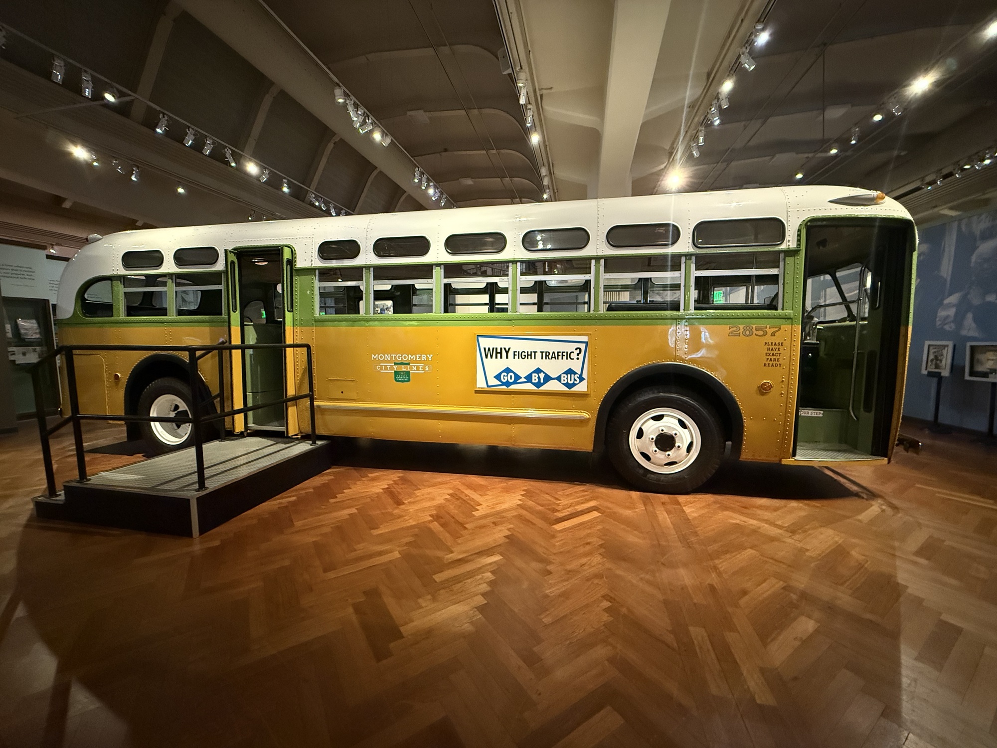 Rosa Parks refused to move to the back of this very bus, sparking the Montgomery Bus Boycott which lasted for 381 days and became a pivotal event in the American Civil Rights Movement.