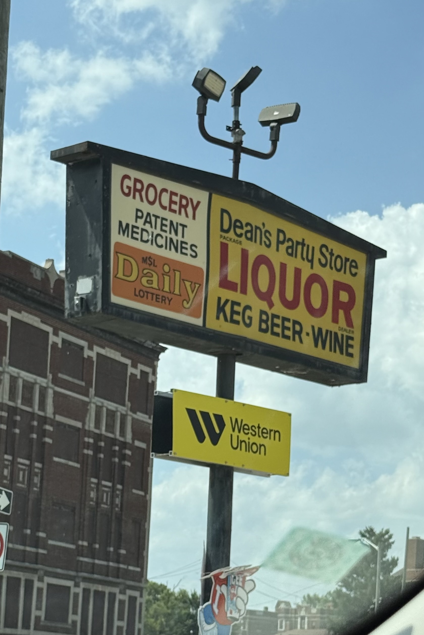 A church and a liquor store on the same block like these wasn't uncommon, but about half the time the church was either shuttered or a mission. This upscale liquor store boasts a "full line of groceries."