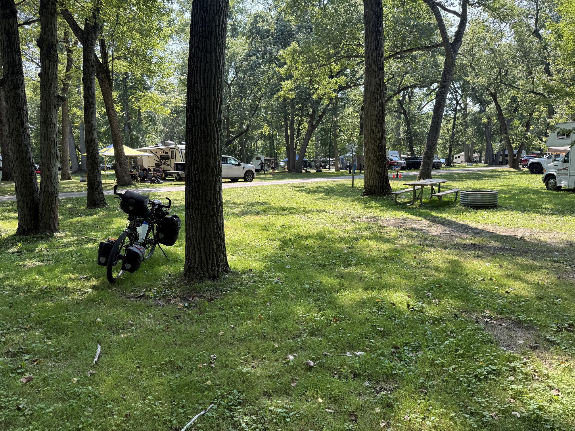 The campground was crawling with people, crowded and loud: music playing, parents yelling at their kids, dogs barking, babies crying, and TVs blaring... but the shower was nice. And I took my towel.
