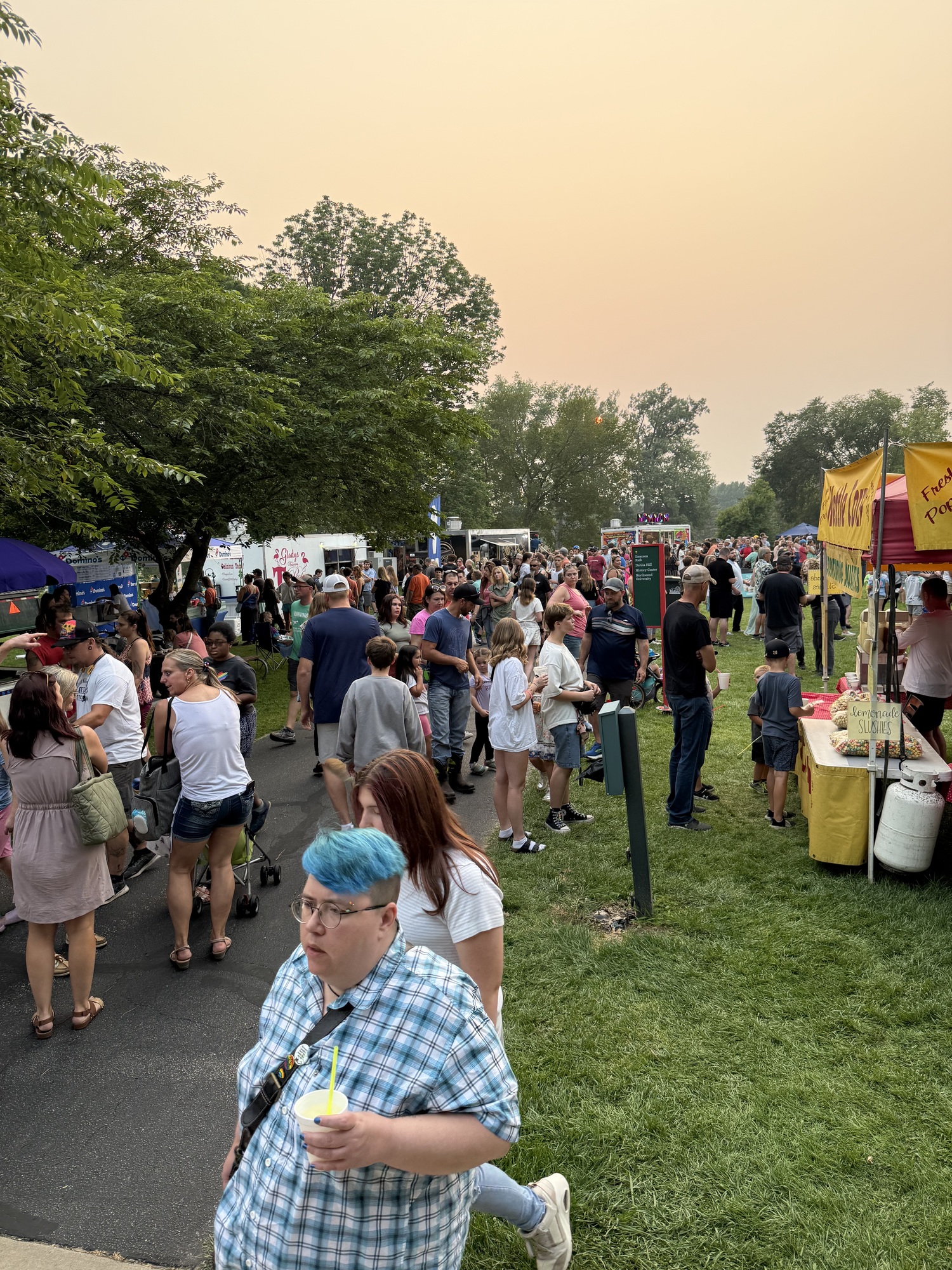 The smoke from the wildfires was worse today than it's been yet. It's my understanding that if it's severe enough it can turn a person's hair blue, but I've never seen any evidence of it.
