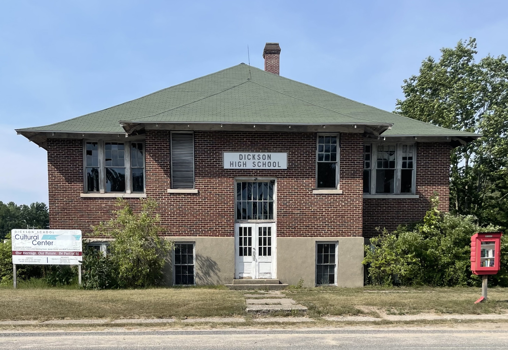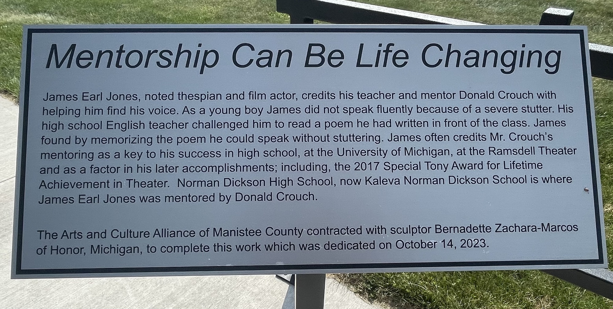 (credit should be given to Kirsten for taking the pictures of the high school, the sculptures, and the informational board, which she texted me later)