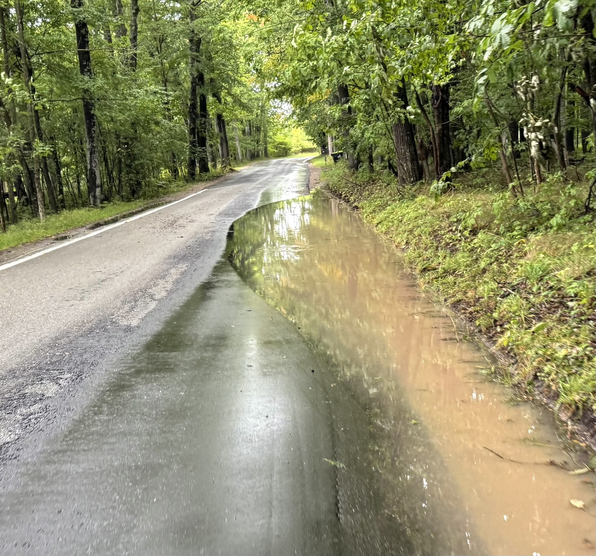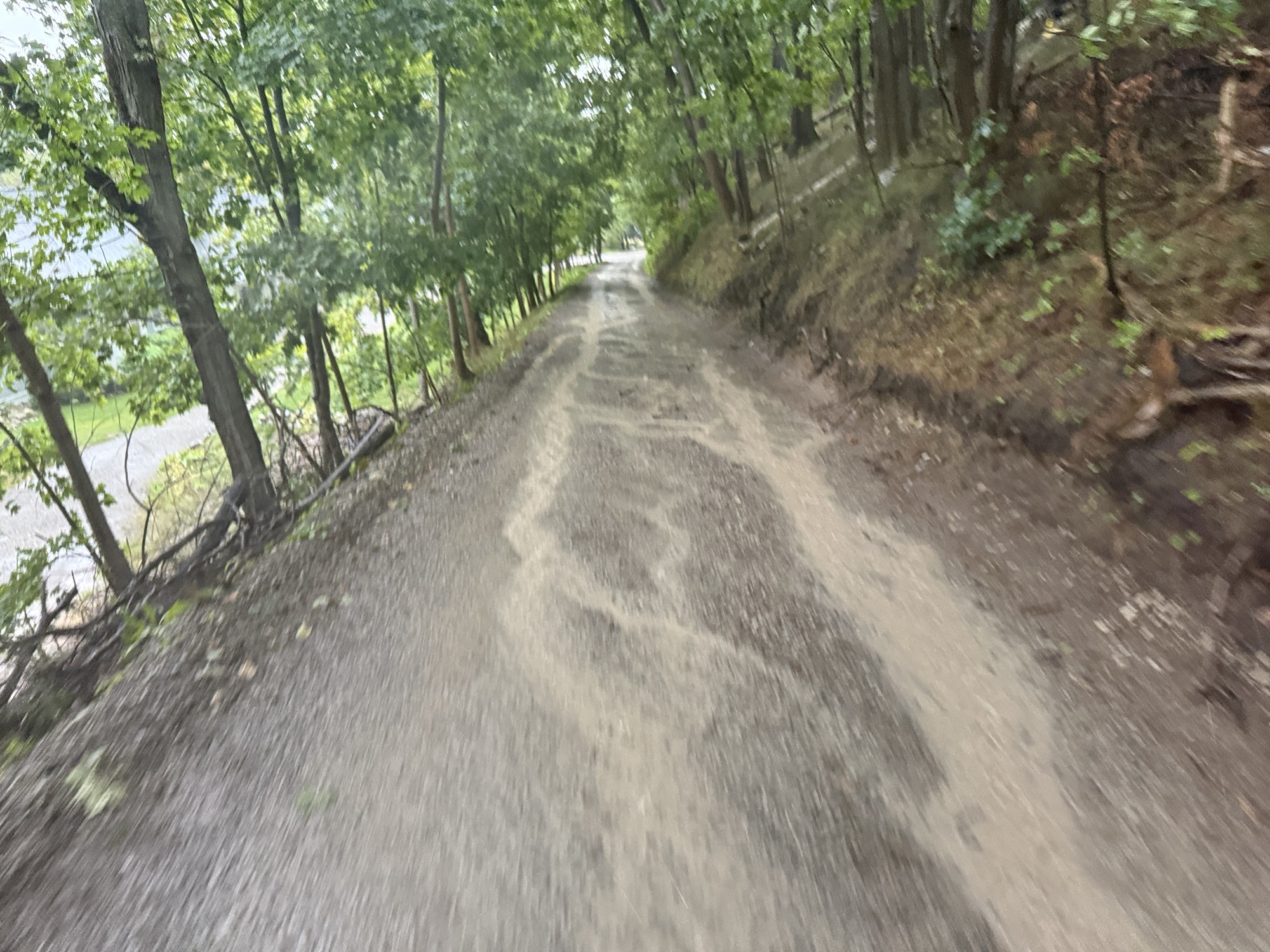 I forgot to load my route onto the Garmin so I had to use the RideWithGPS app on my phone. The problem with that was the rain continuously pelted the screen. As a result, about every 10-15 minutes a raindrop would hit just the right spot and the ride would get canceled, or it would add another stop.... usually in a location nowhere near us, and sometimes worse, just a couple of streets over.