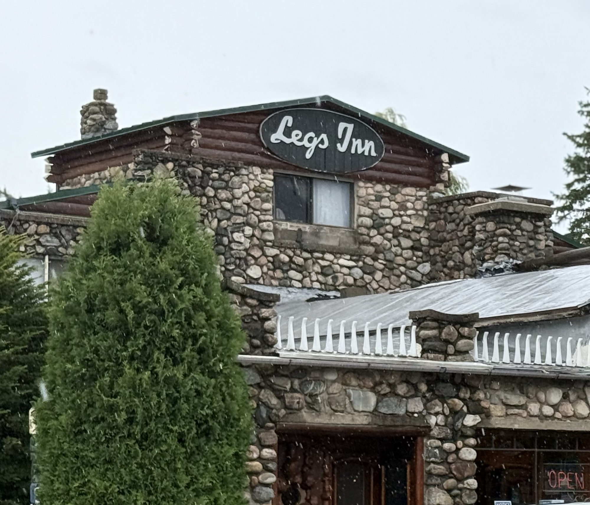 Both of us were feeling pretty wiped out (read: only me, since Lori appeared to have boundless stores of energy) when I saw a simple sign that said "Coffee." We wheeled in and after clambering off the bikes went inside to the relative warmth. There was a trail of water from the door to our seats, and within a couple of minutes there were puddles on the concrete floor beneath us.