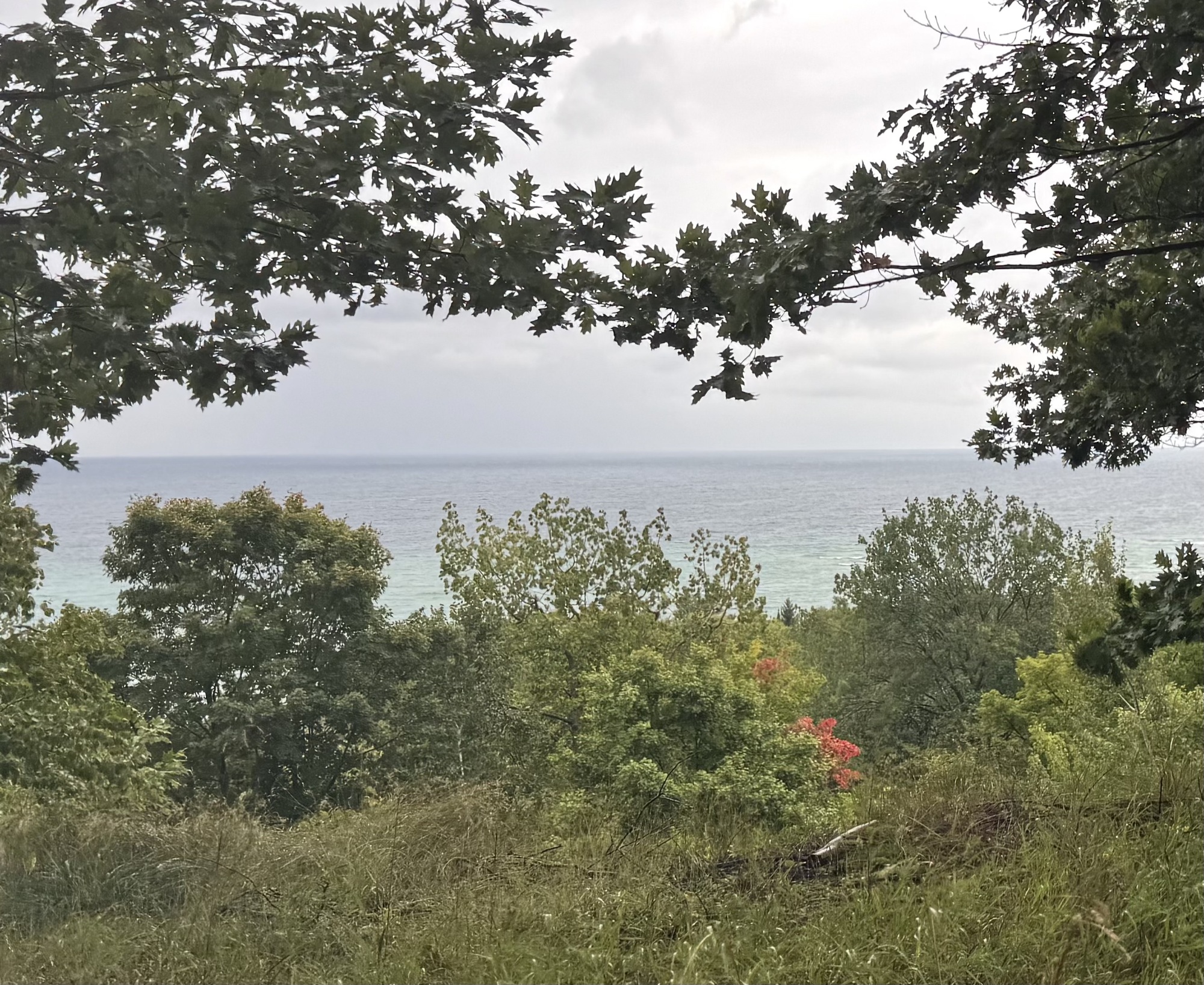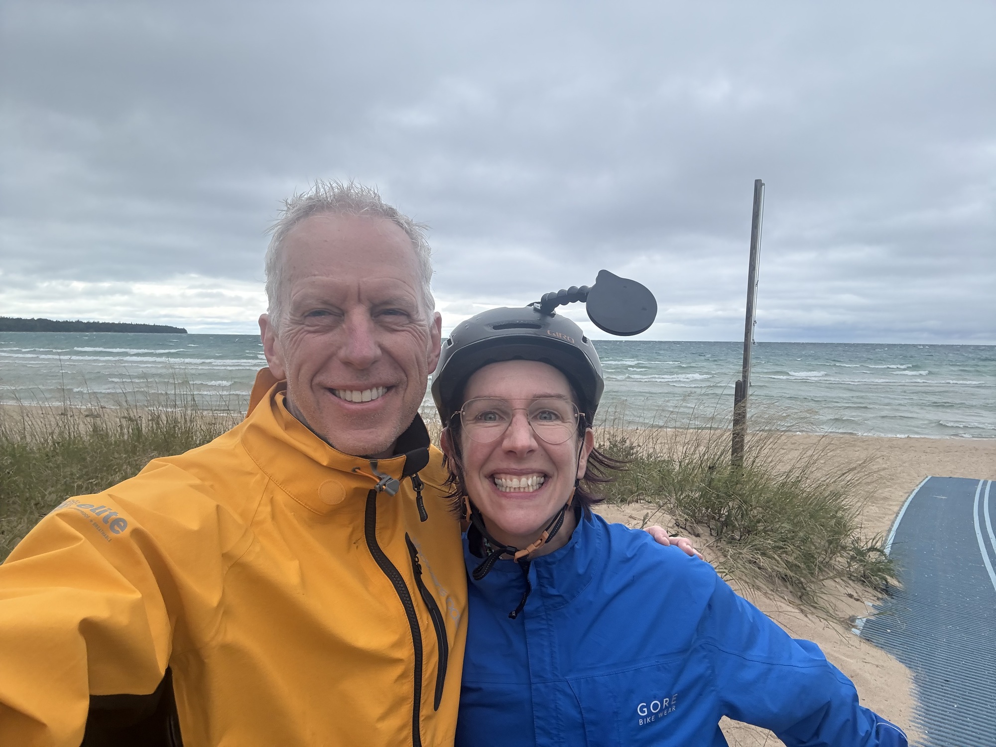 Our campsite was right on the water so there wasn't much obstructing the wind off Lake Michigan. The headwind had remained steady all day at 20-22 mph, but here it seemed like we were in a wind tunnel, and the wind chill factor dropped the temperature from the mid 50s to the low 40s. Not unpleasant, mind you, but the roar never stopped so we needed to yell at each other when trying to communicate from tent to tent, even as close as we were.