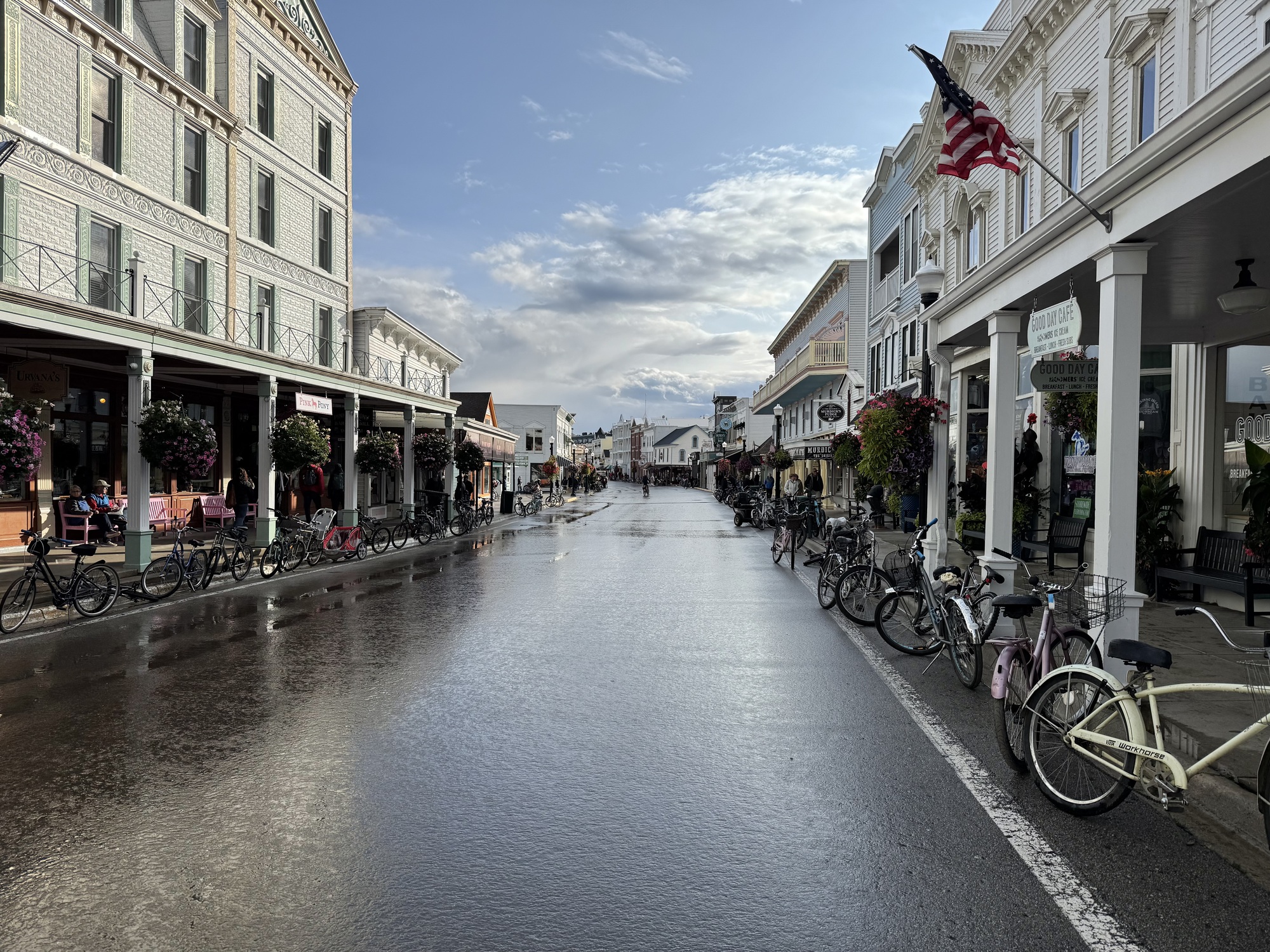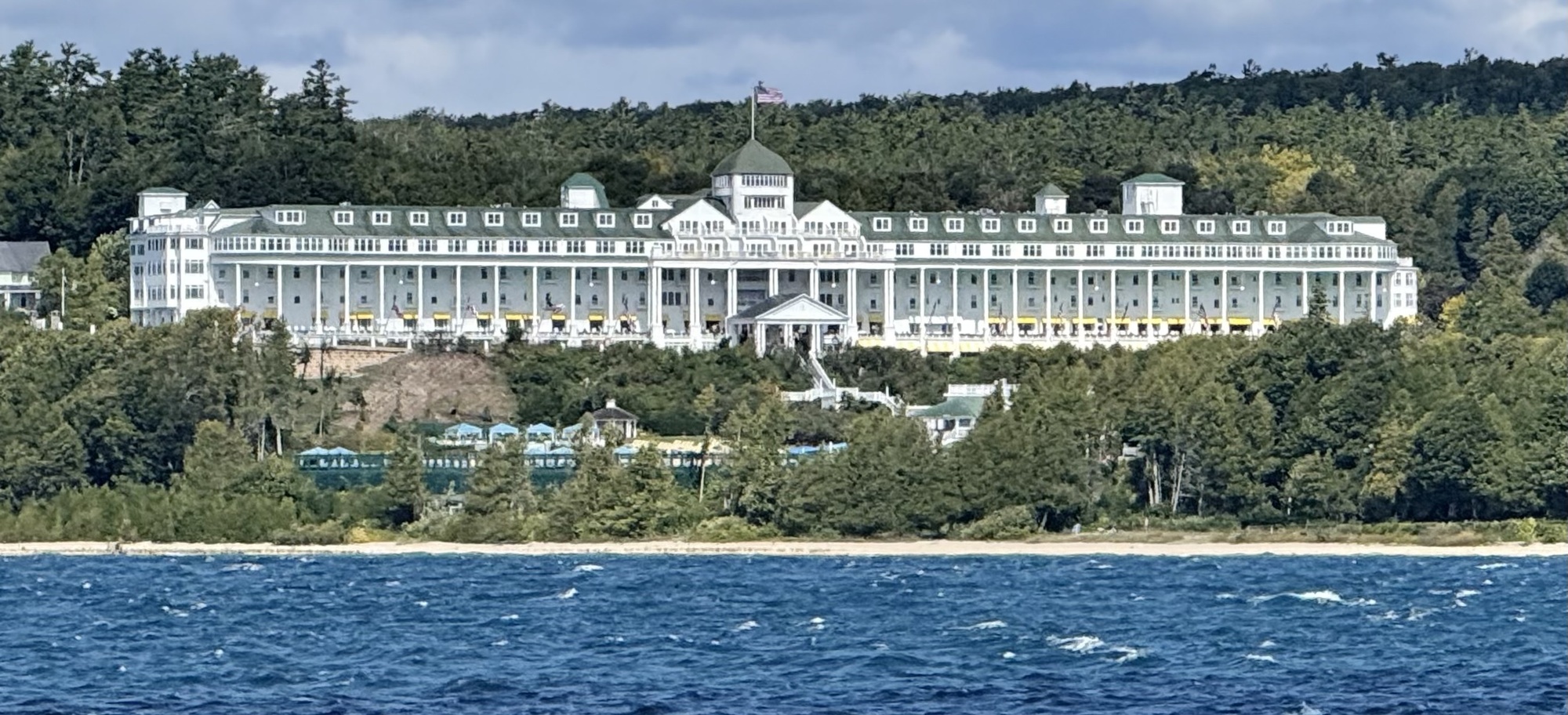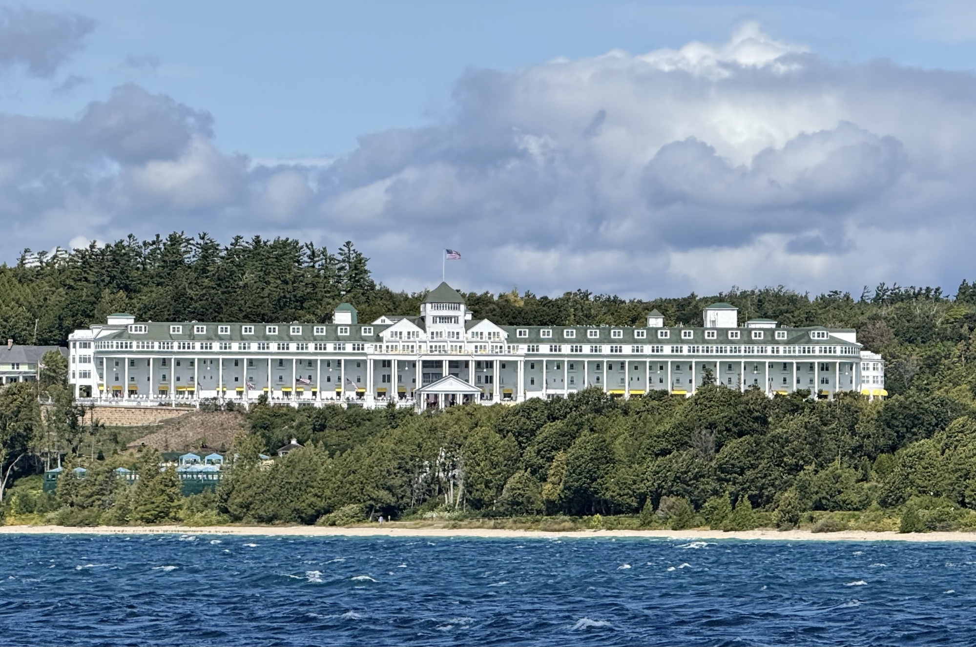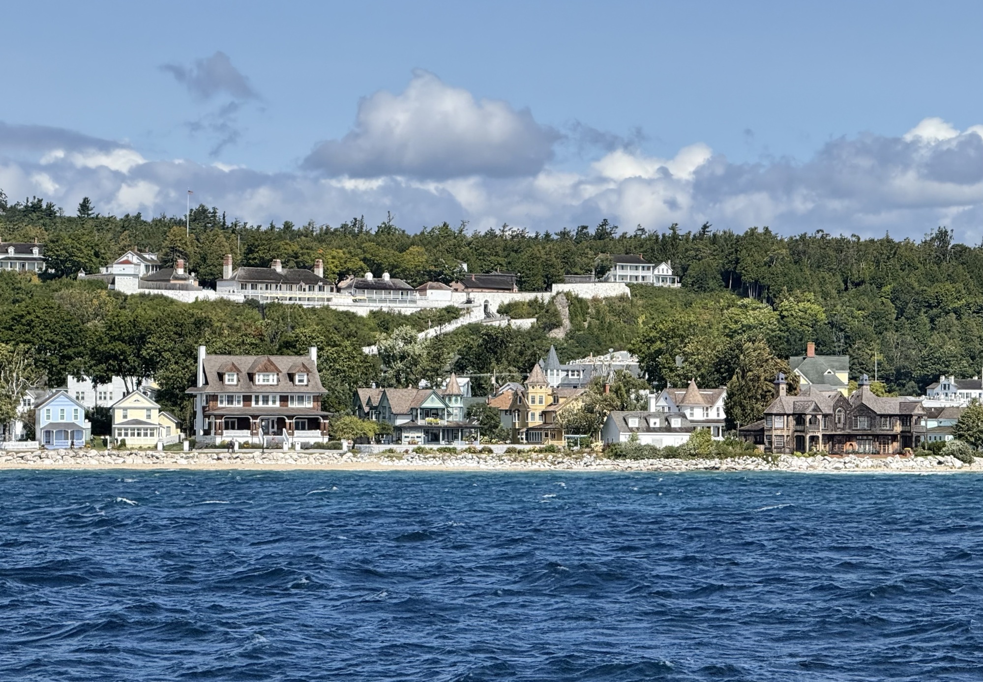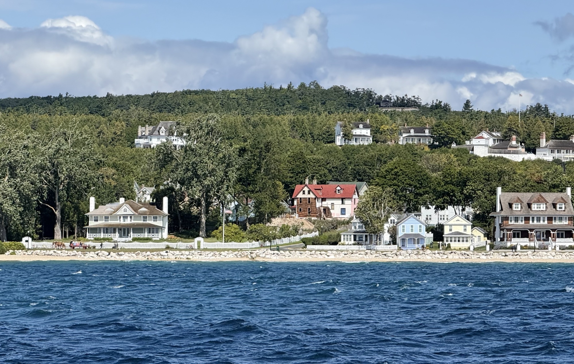 Mackinac Island is packed with tourists. Even now, after Labor Day, the streets had a fair number of people strolling around, wandering into shops to buy trinkets and fudge (every business sells fudge, and every third business sells it exclusively), or t-shirts ("I flexed my arms and the sleeves ripped off" and "I ♥️ my wiener," with a picture of a dachshund). A few people ventured carriage rides, and there were piles of horse manure in various stages of decomposition after having been rained on, or trampled on by other horses. The odor of horse manure permeated the business district and competed with the smell of cotton candy, fudge, and the wind off the lake.... and usually won.