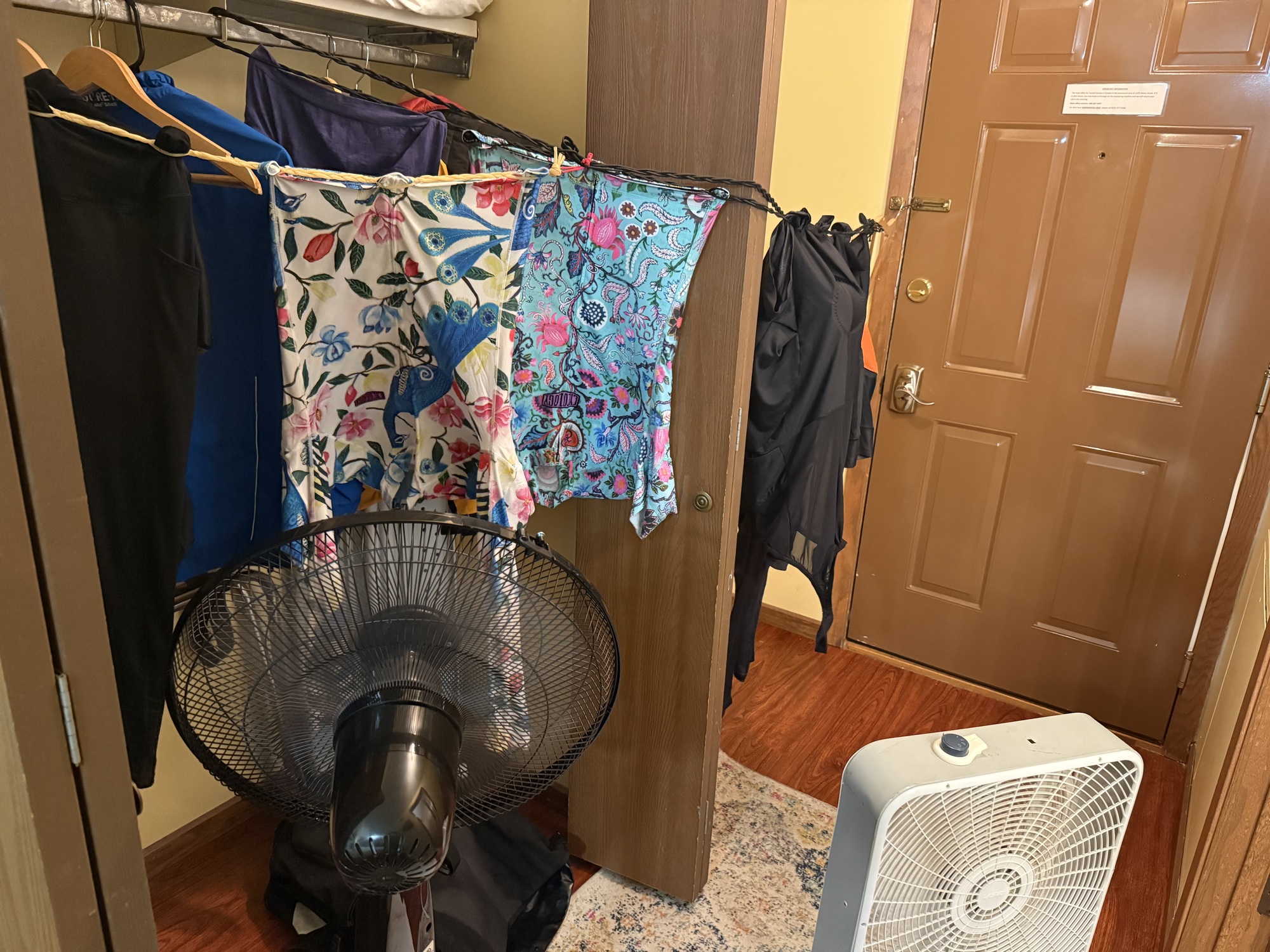 Arriving back to our room, we realized our mistake: Never trust the weather forecast. Our clothes were still on the deck, half of which were now on the ground. They couldn't have been wetter if we'd just pulled them out of the bathtub, completely soaked and dripping.