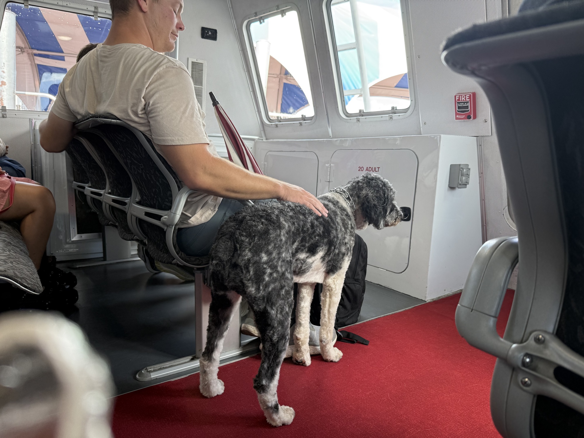 Once on the ferry, another employee separated us from our bikes, placing them among the rabble of other cycles. As we were entering the cabin, I noticed a strong smell of urine permeating the place. After checking my pants, I looked around and determined that it's probably a result of the numerous pets they allow on the ship, all of them secretly marking their territory. Once I realized that, I didn't mind as much - it's better than some guy in the corner standing with his back to me.