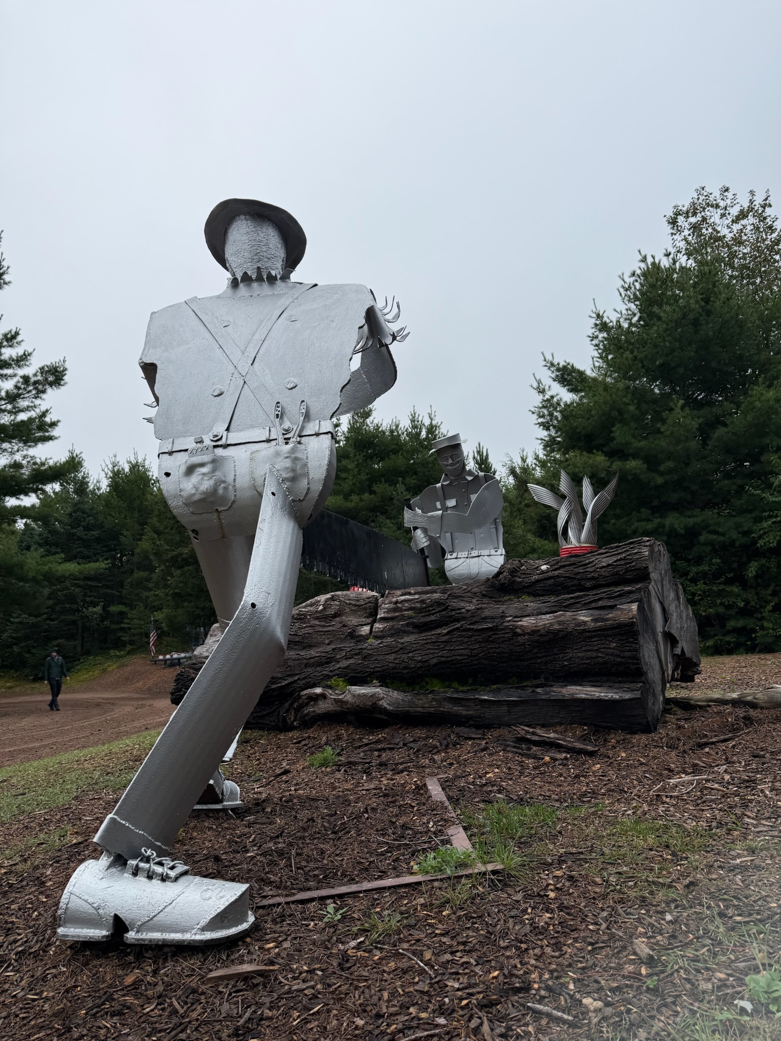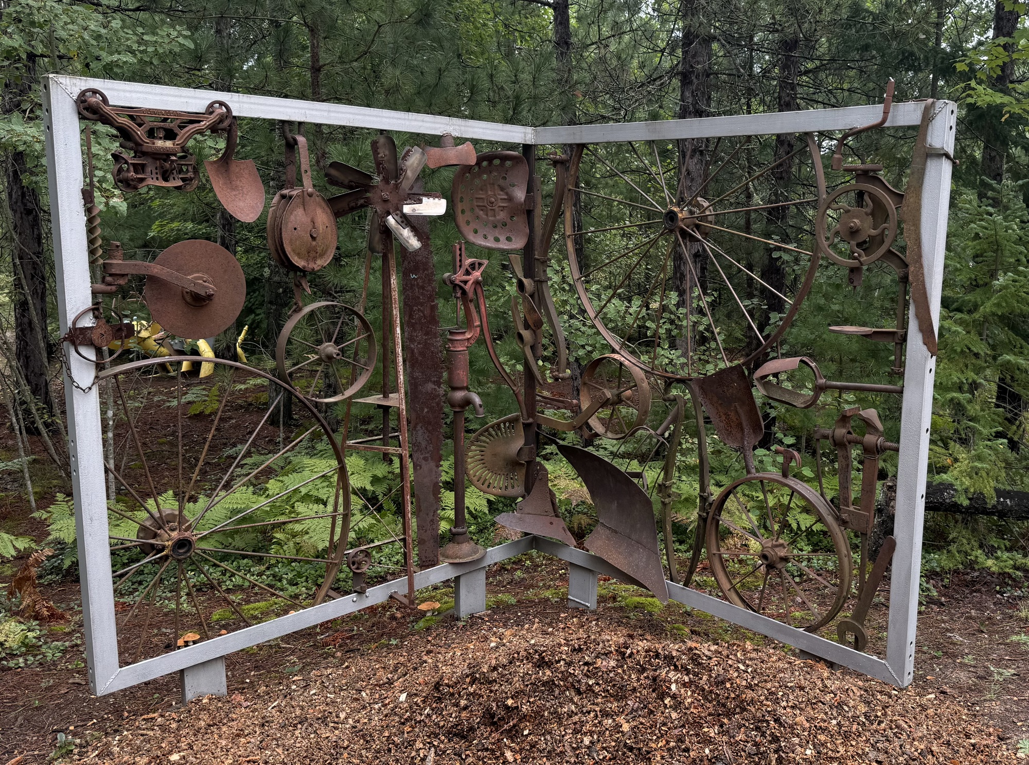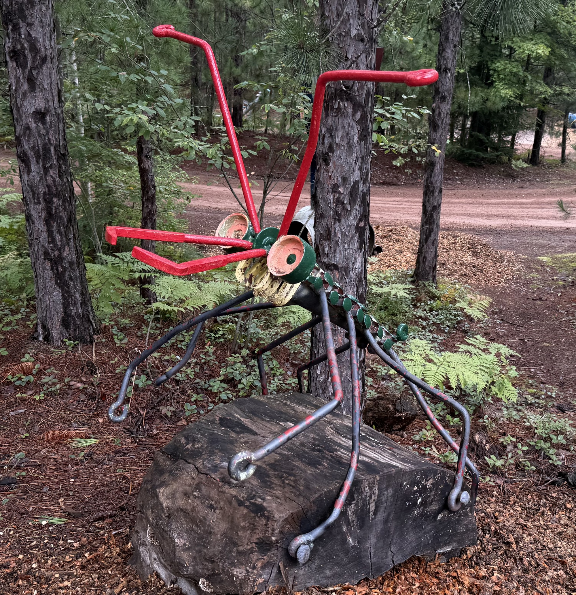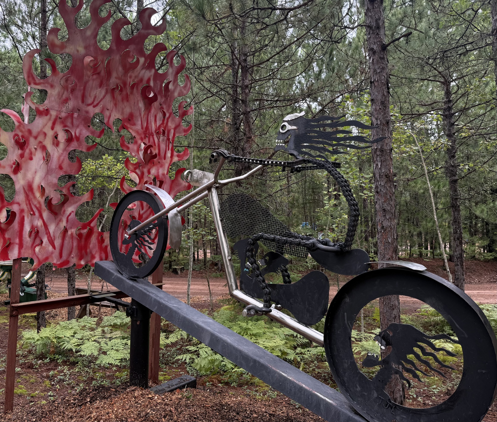 While we were looking at one of the sculptures, a truck trundled slowly past pulling a rectangular piece of metal grading the road. We wondered if it might be Tom so, curious, we flagged him down on his second pass. Fortunately for us, it was him, and we briefly chatted but, as Lori put it, "He's a man of few words." To me, he seemed guarded, as if afraid he might say the wrong thing.