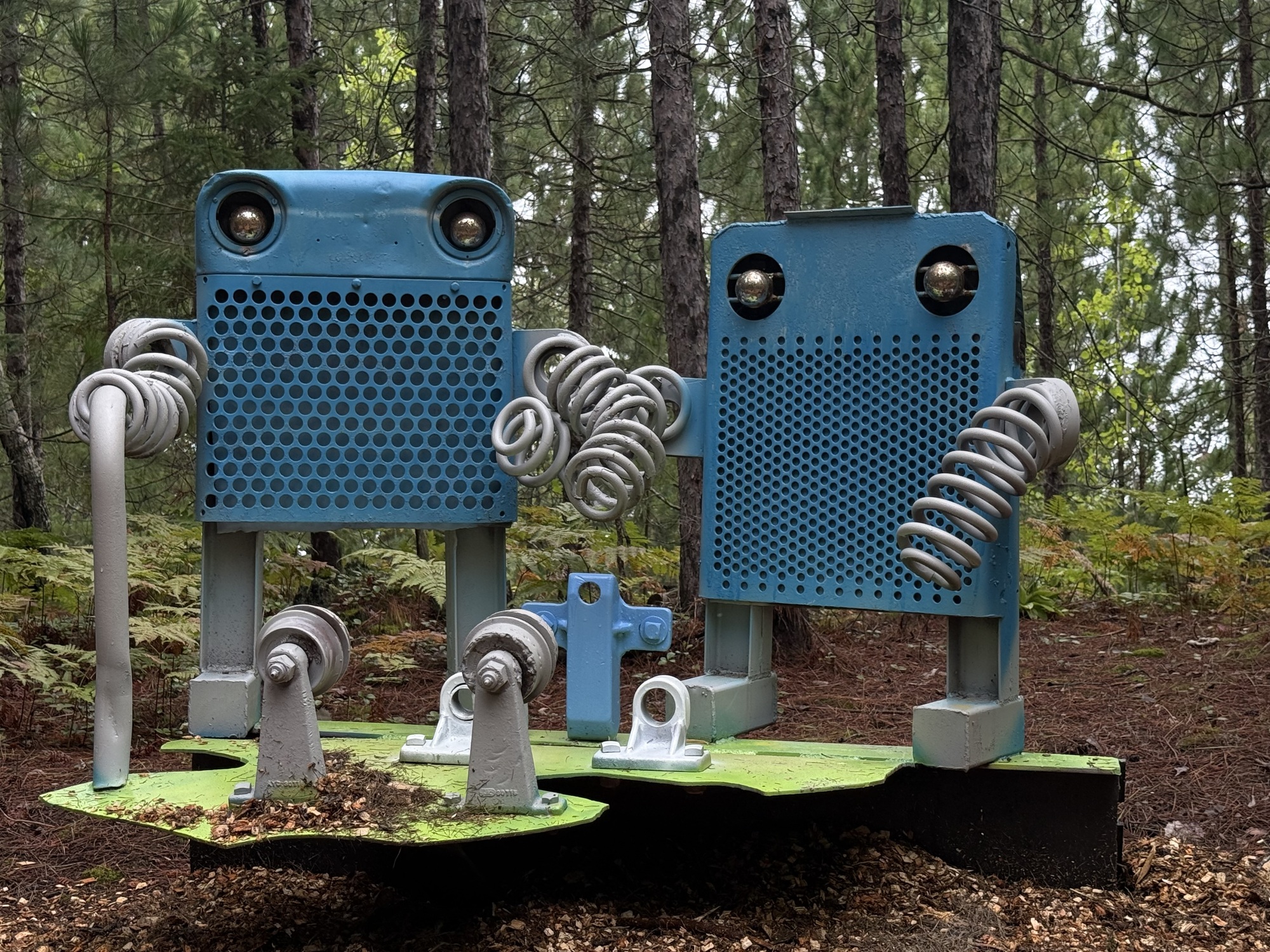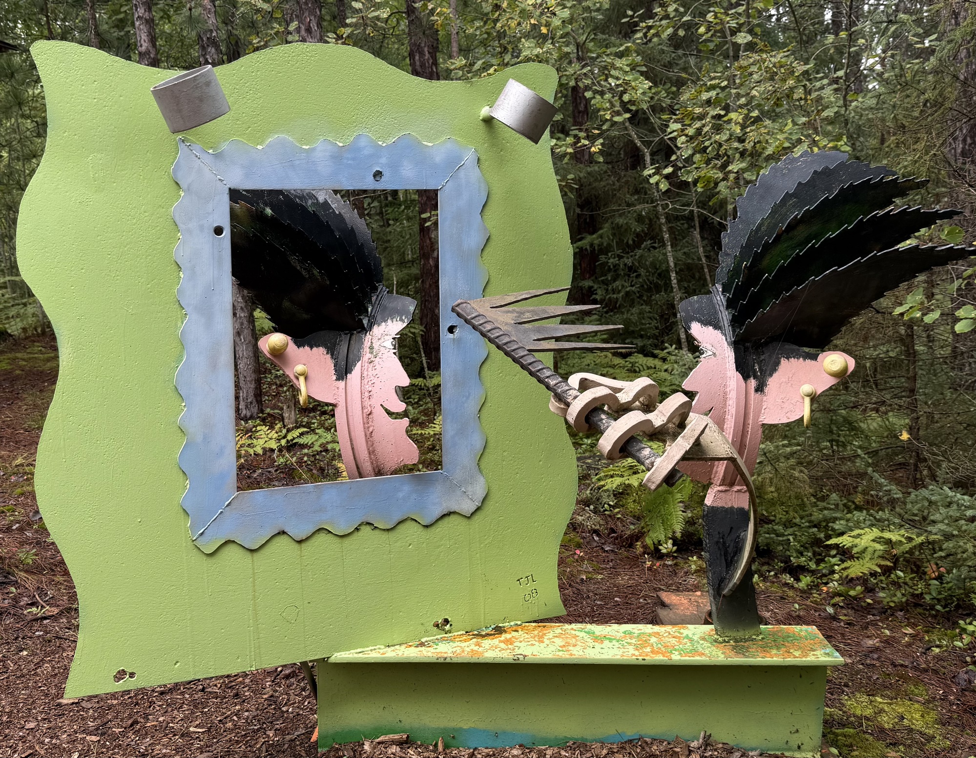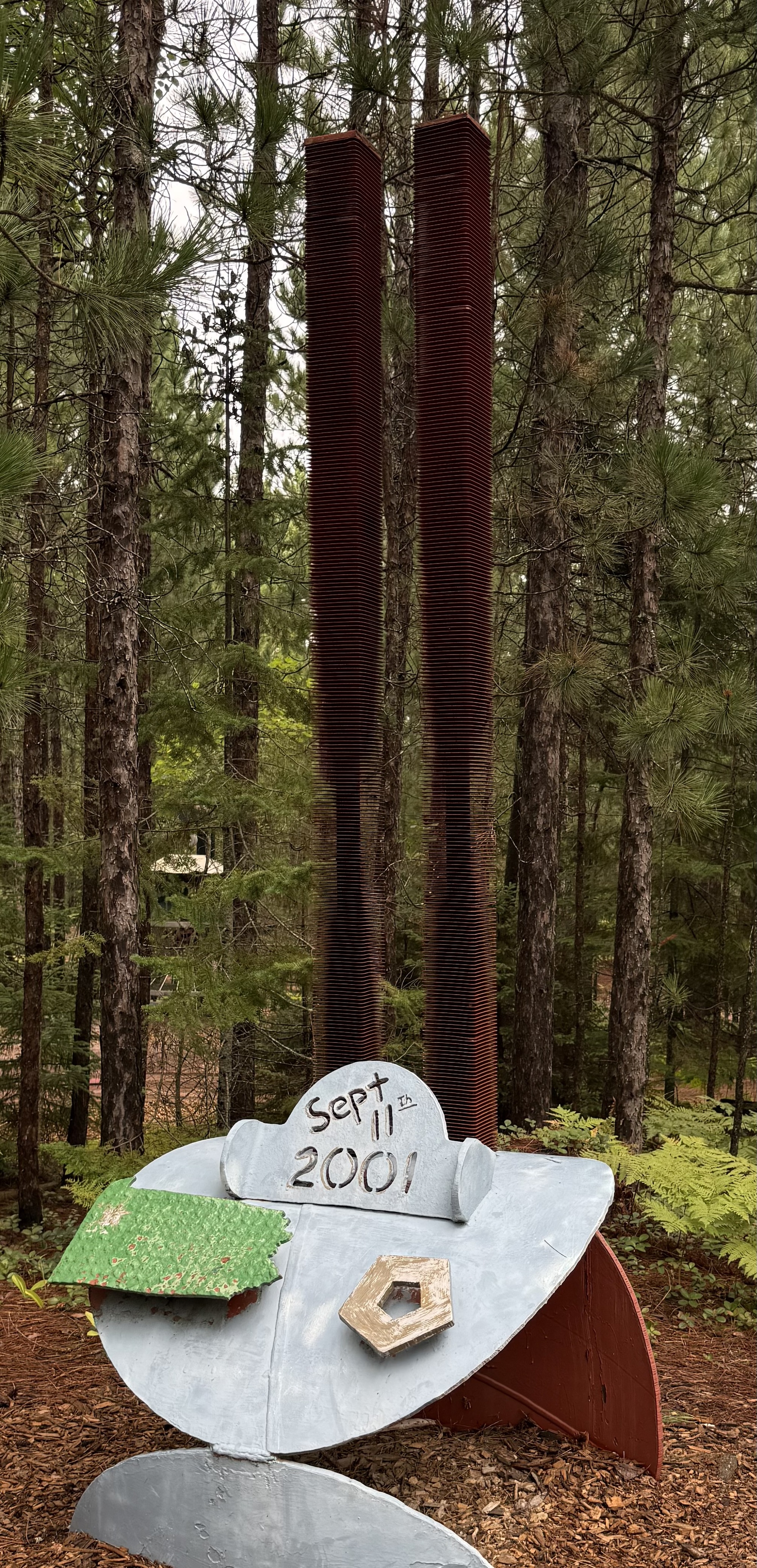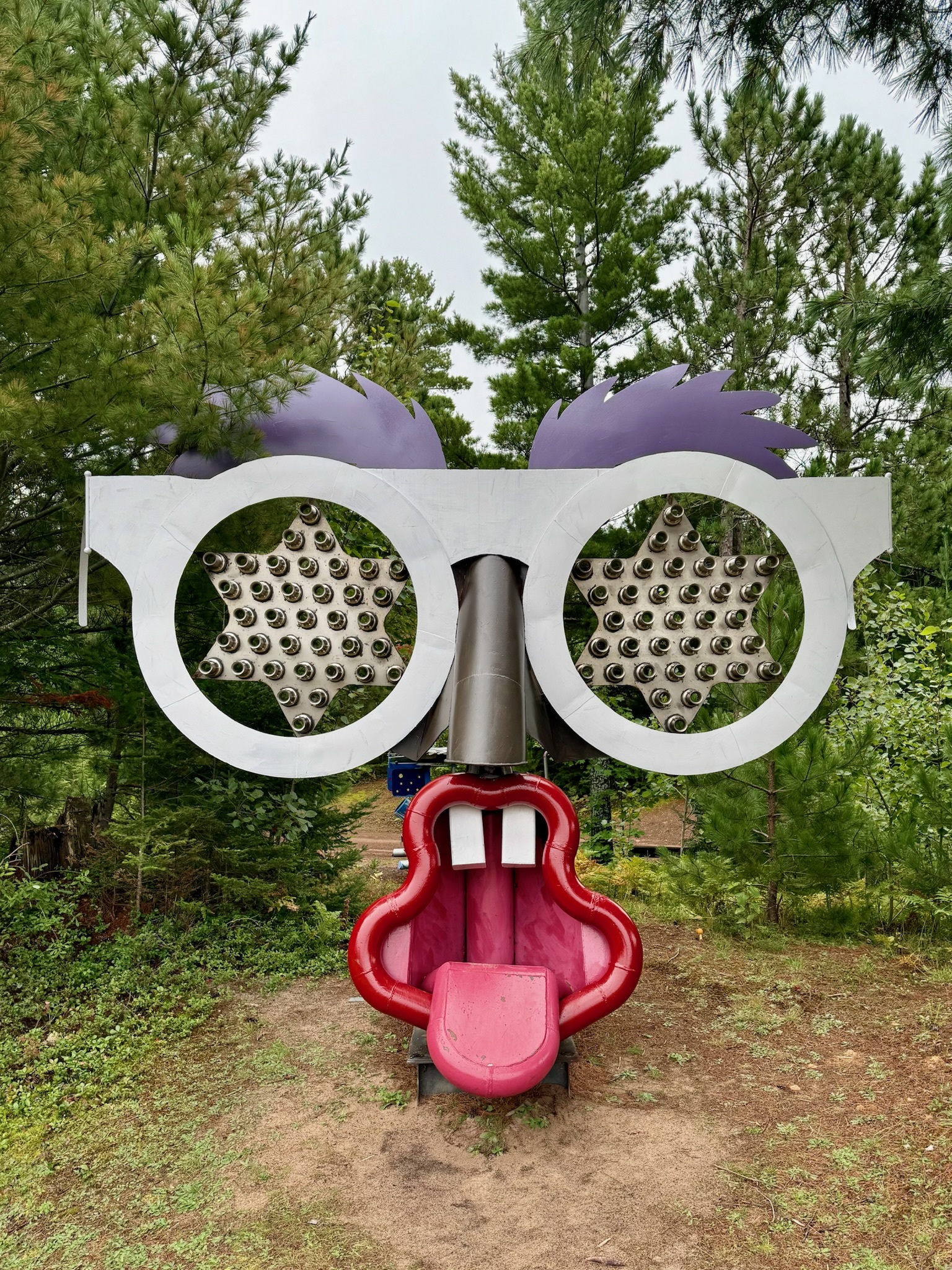 While we were looking at one of the sculptures, a truck trundled slowly past pulling a rectangular piece of metal grading the road. We wondered if it might be Tom so, curious, we flagged him down on his second pass. Fortunately for us, it was him, and we briefly chatted but, as Lori put it, "He's a man of few words." To me, he seemed guarded, as if afraid he might say the wrong thing.