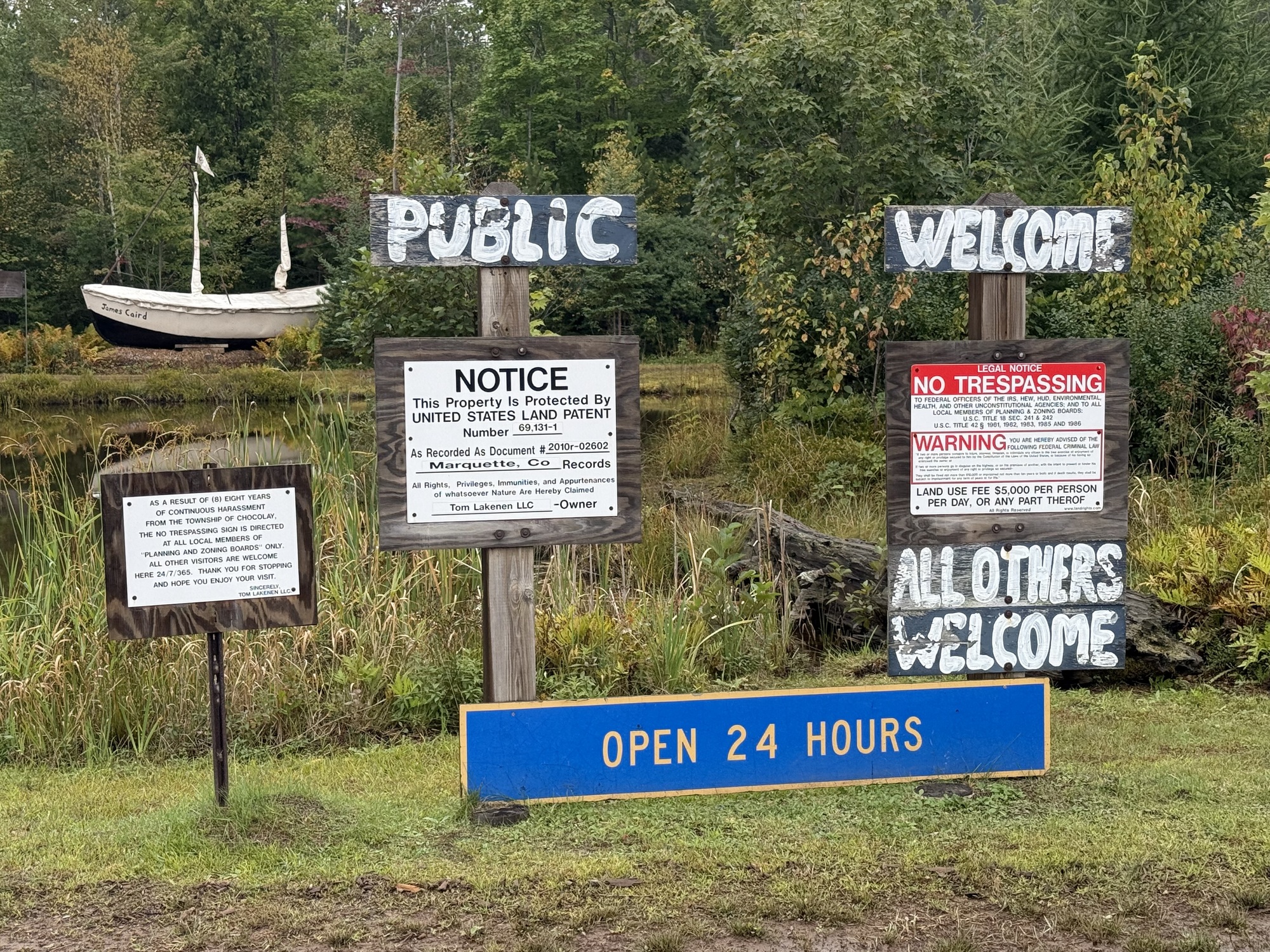 The conflict escalated until, in 2003, he refinanced his house in order to purchase 37 acres of land here on the M-28 highway, then moved everything to this location.